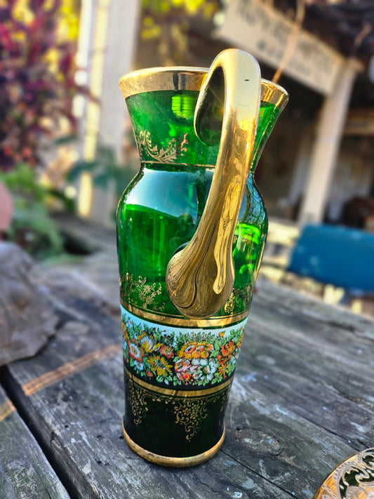 Large Empoli cased glass decanter. Butterscotch mid century italian art glass.