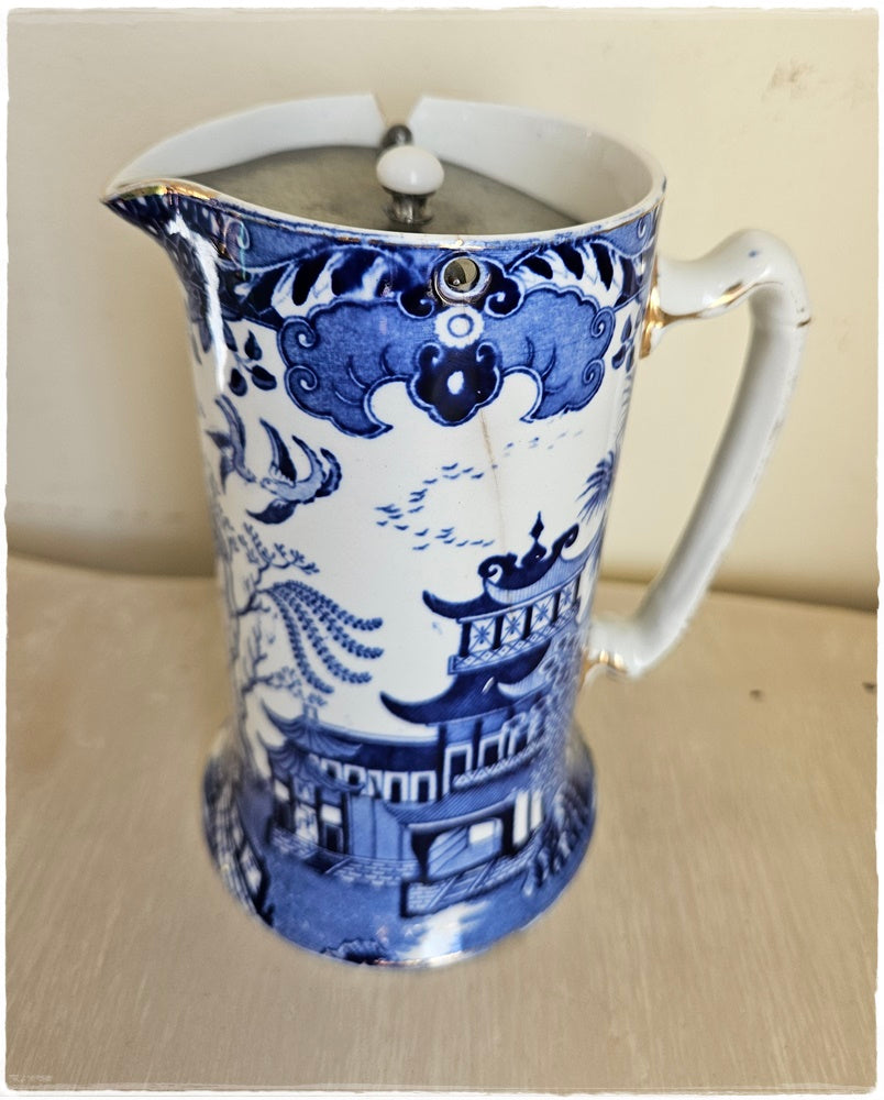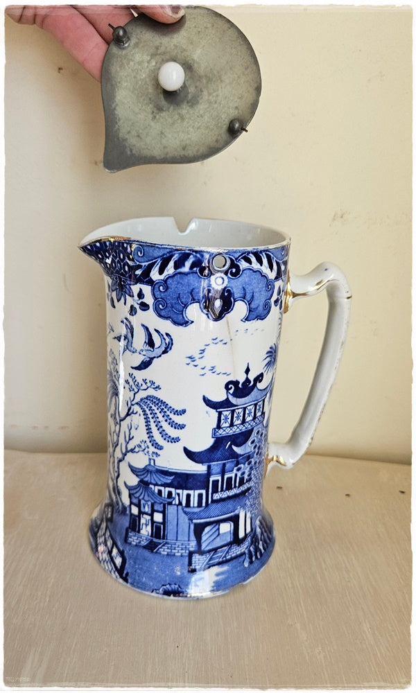 Burleigh Ware hot water jug. Sadly quite damaged. Beautiful deep blue colour.