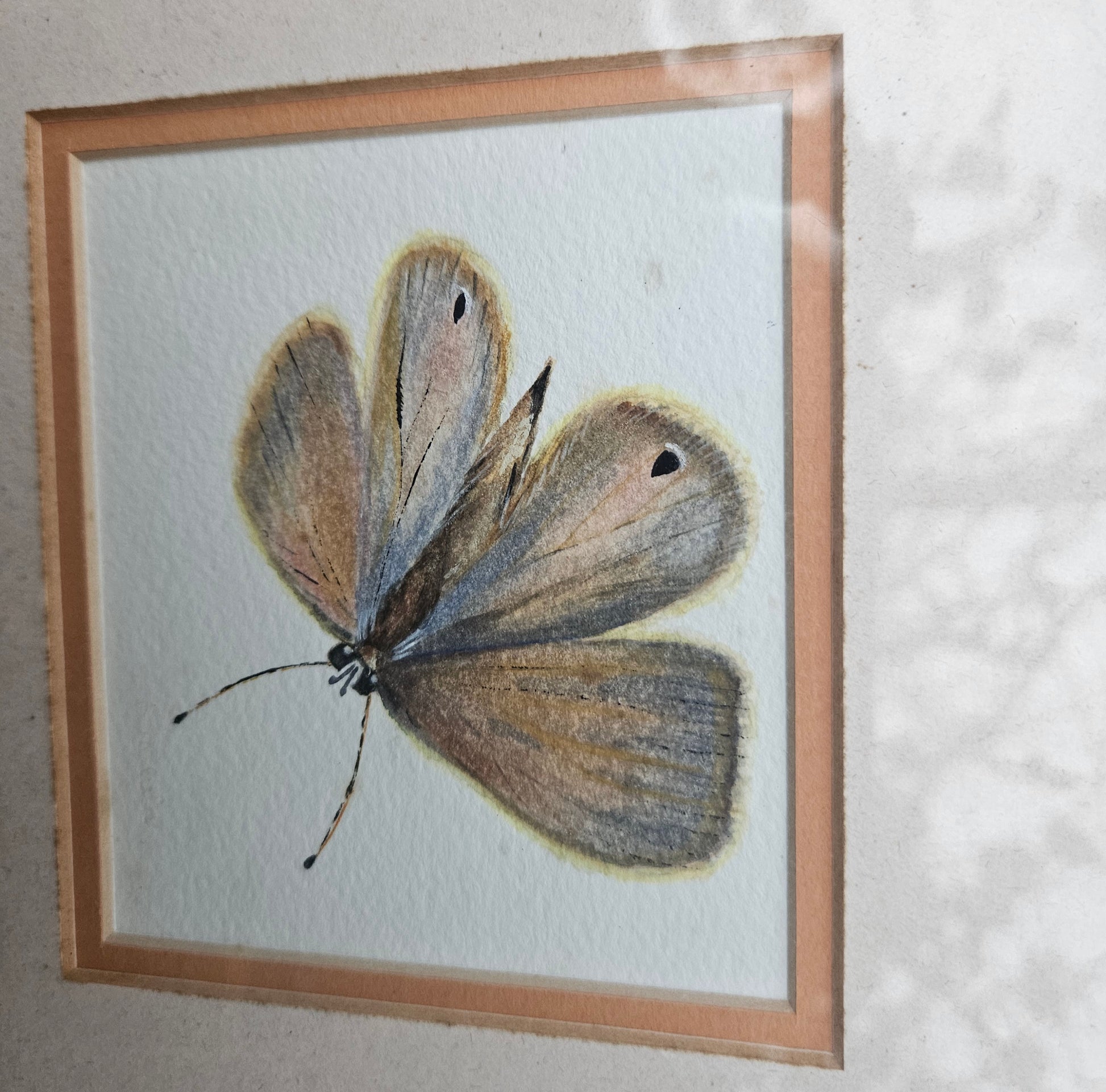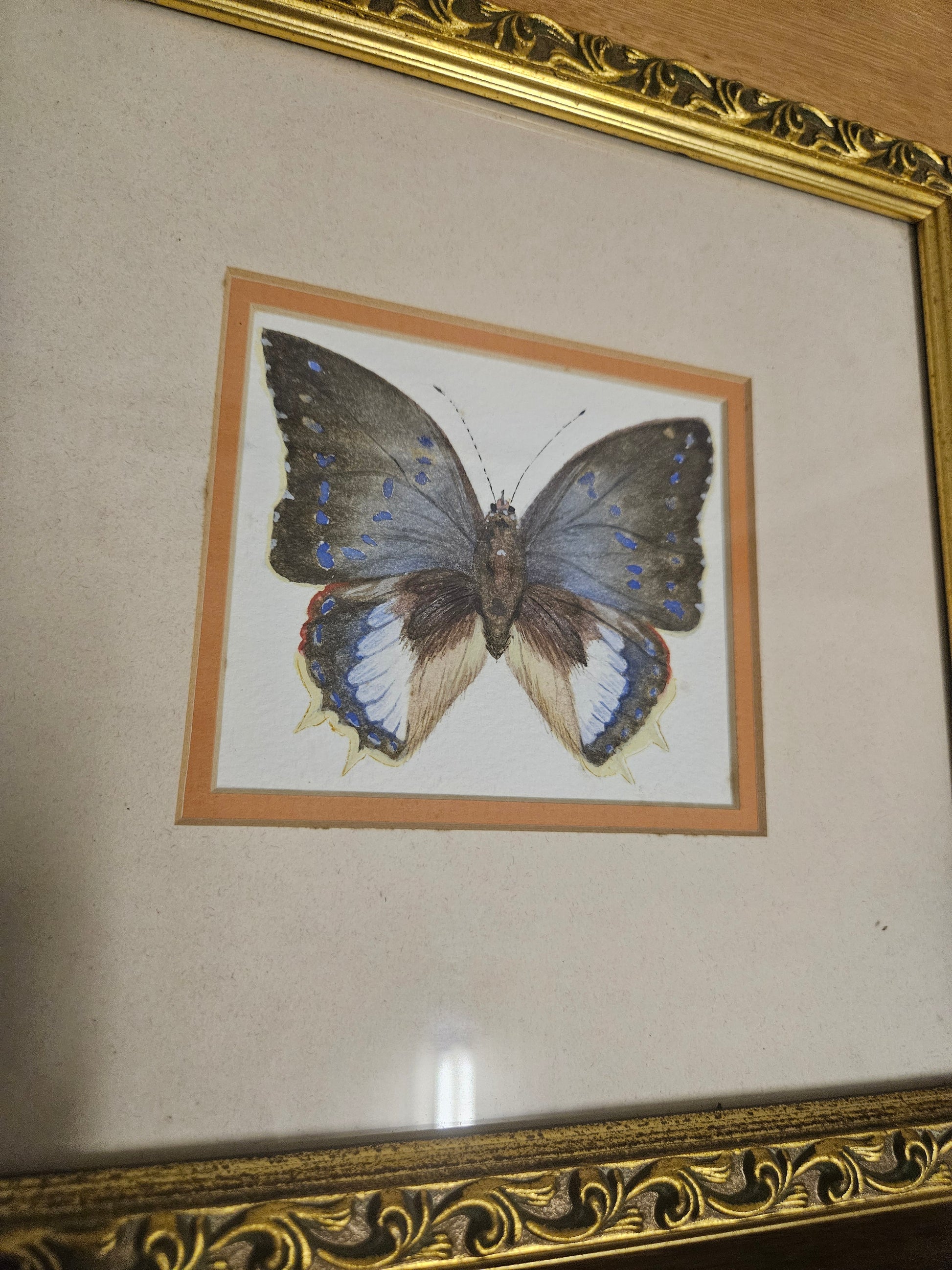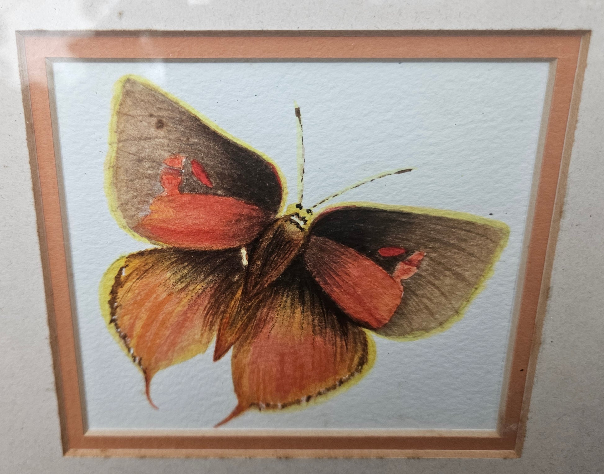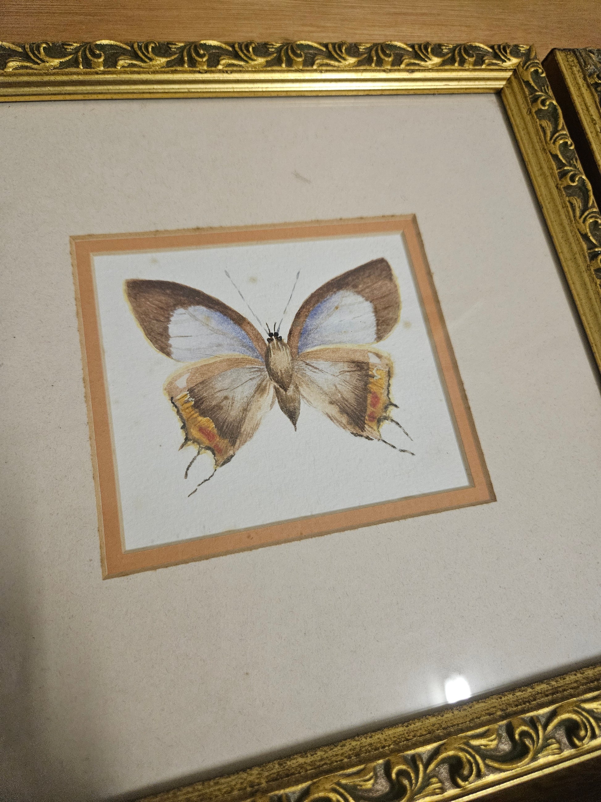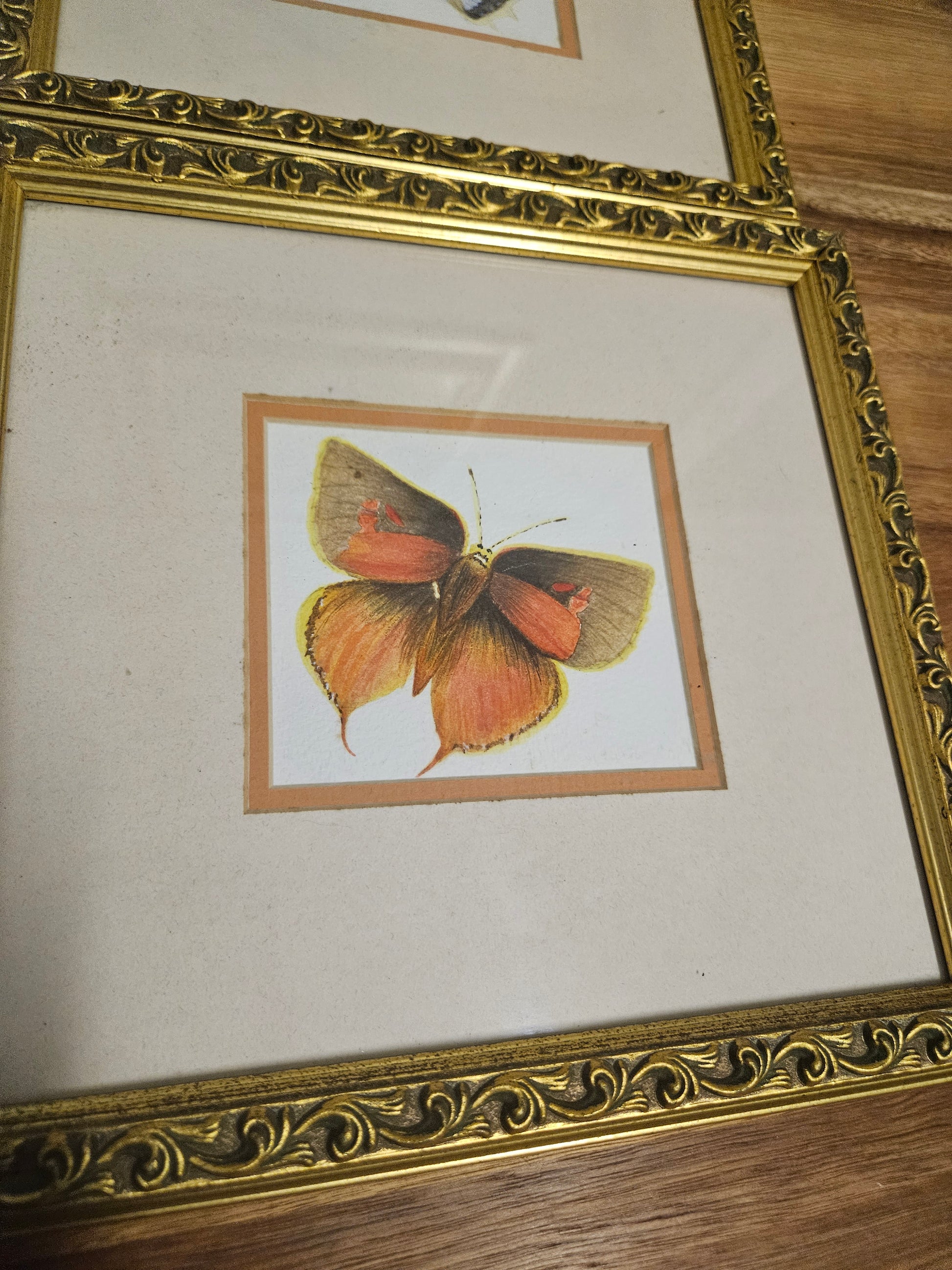 Set of 4 framed butterfly pictures. Look like original watercolour paintings and can see a very feint artist's name on each picture (but just can't make it out).