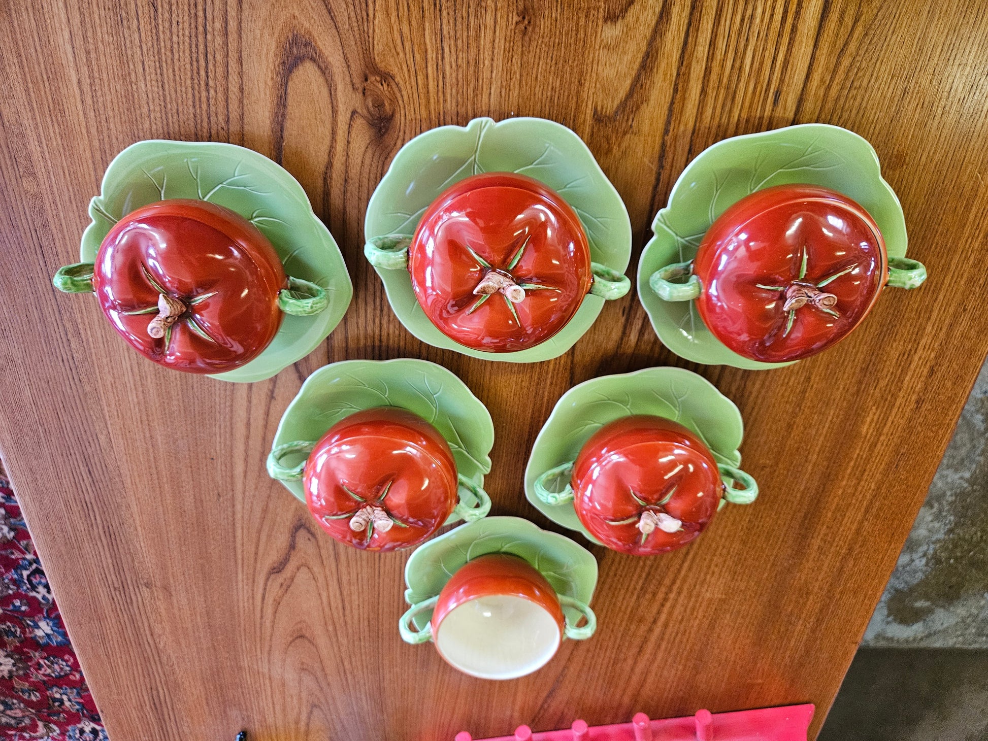 Condition: missing one lid, one tiny chip on a lid and a small chip on a saucer.