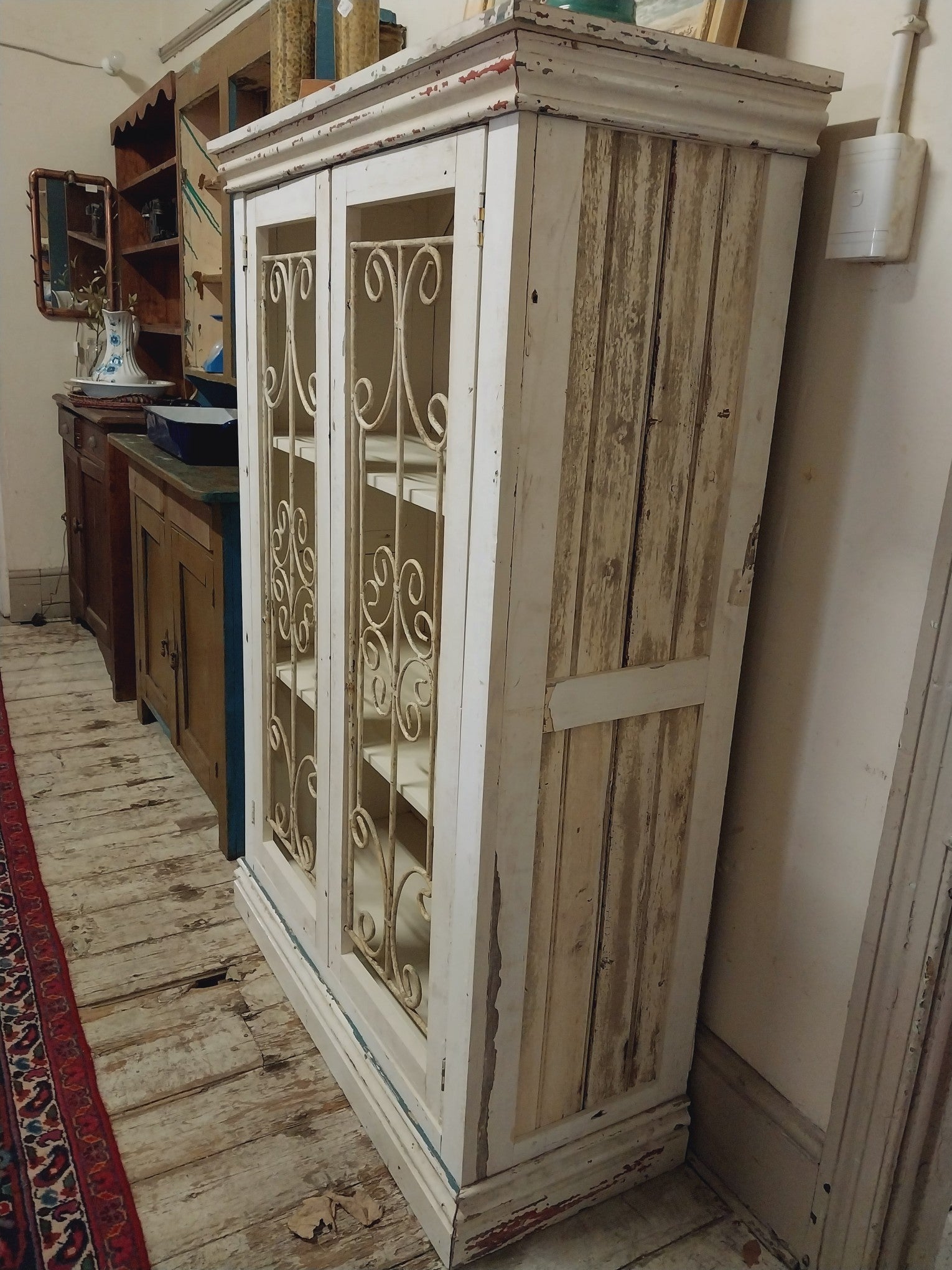 Gin Cupboard. Rustic cupboard with burglar bar doors. Newly made from reclaimed materials.