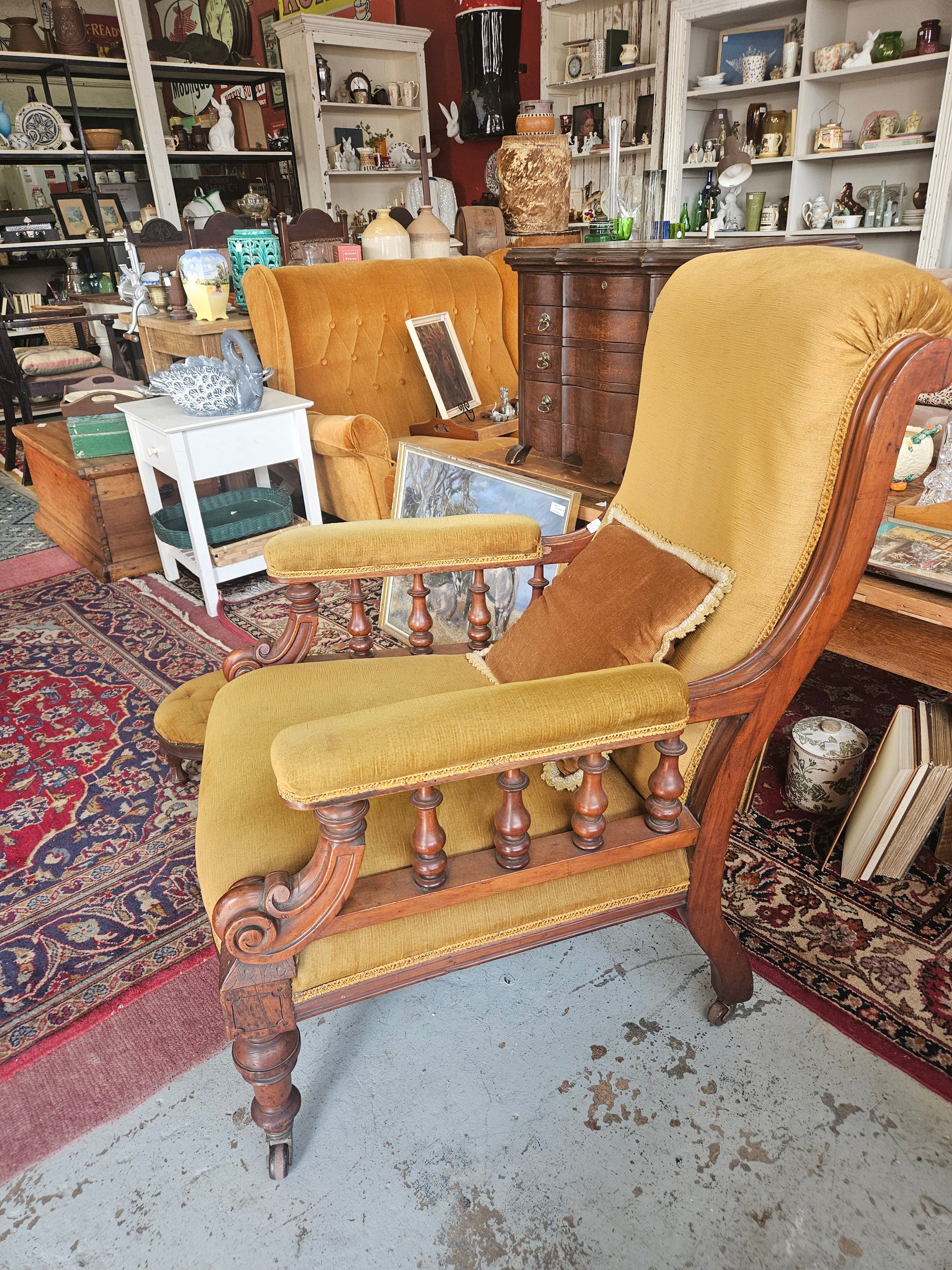 Late Victorian Mahogany Fireside Chair and two matching footstools.