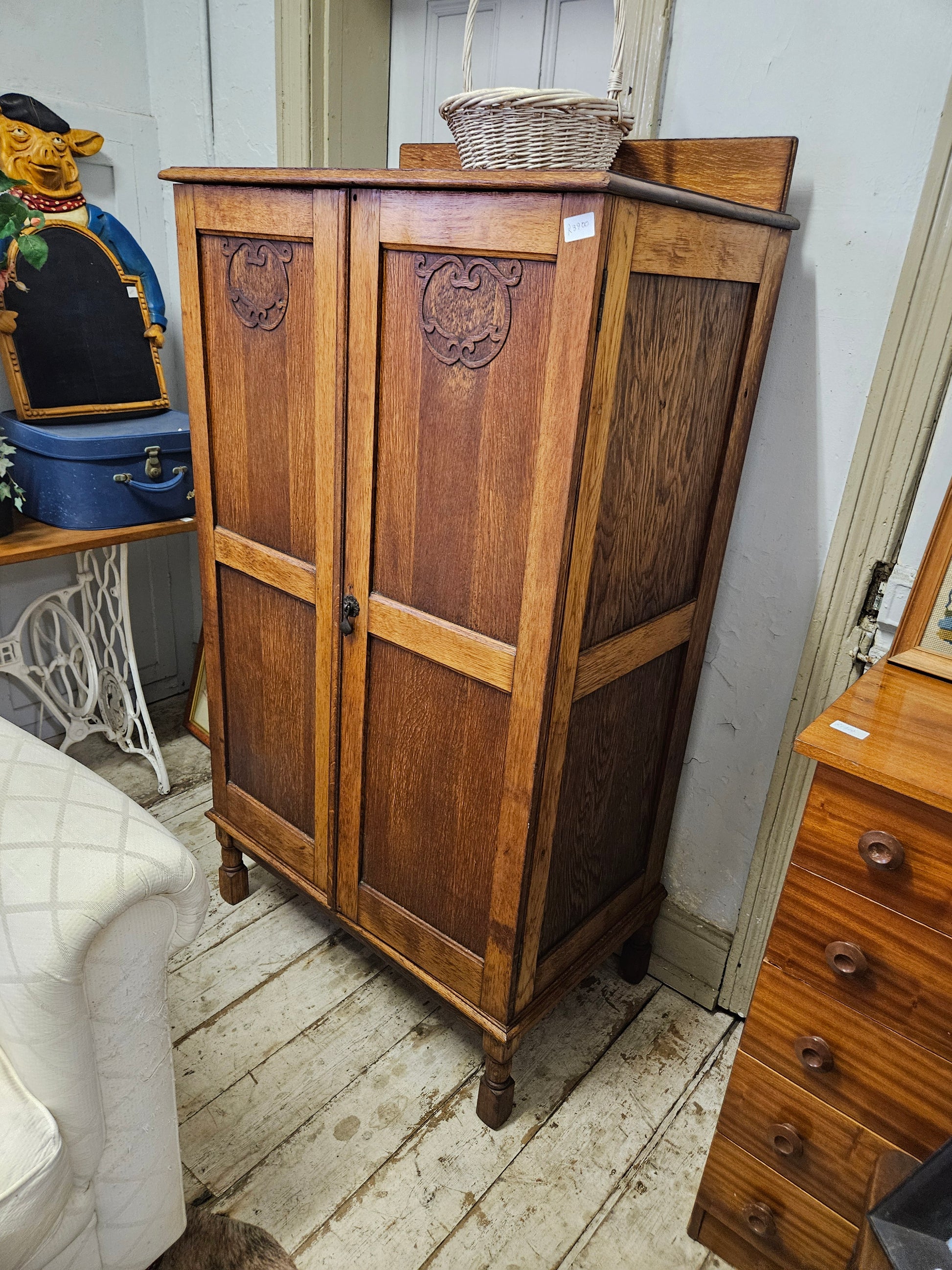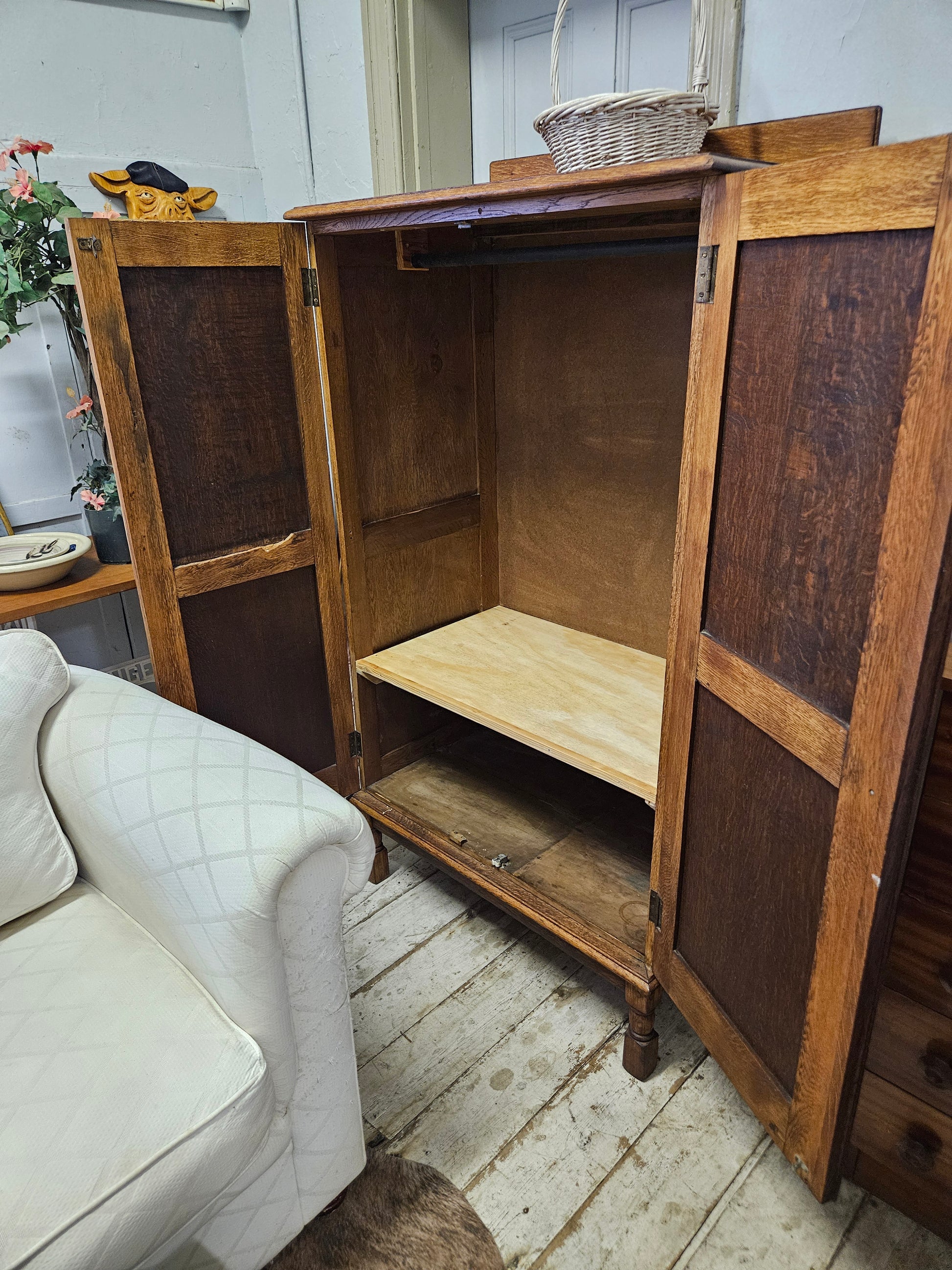 Small oak gentleman's wardrobe with hanging space and a shelf.