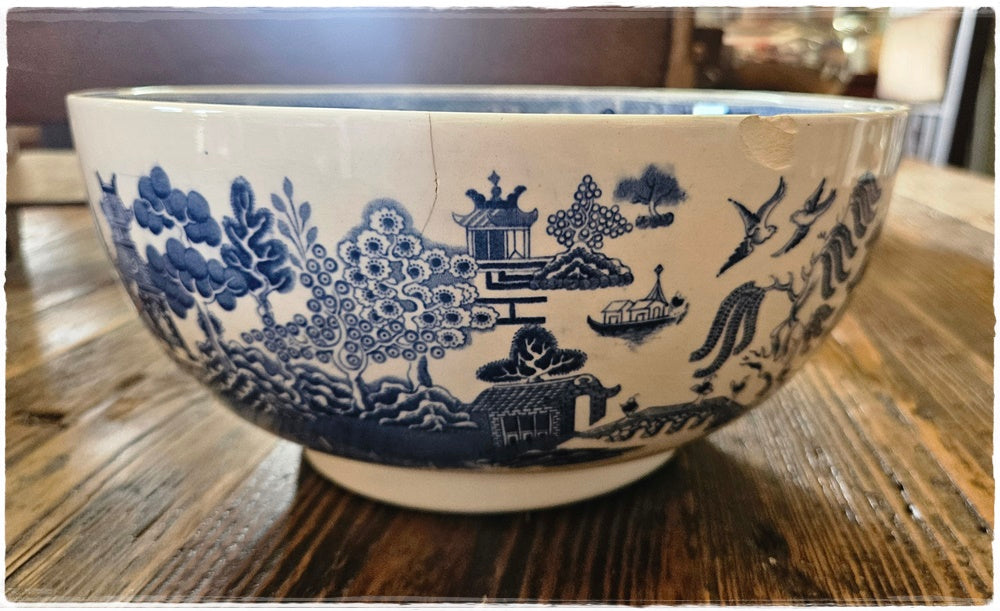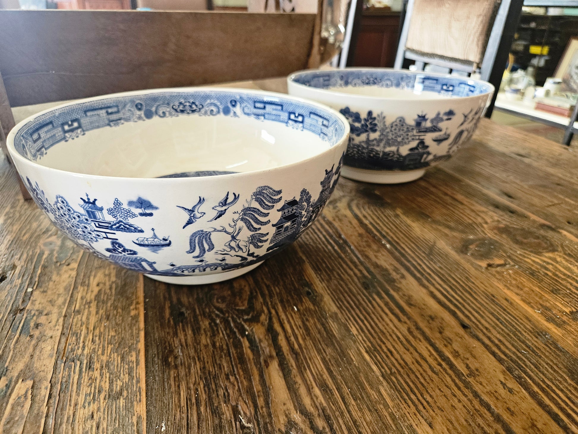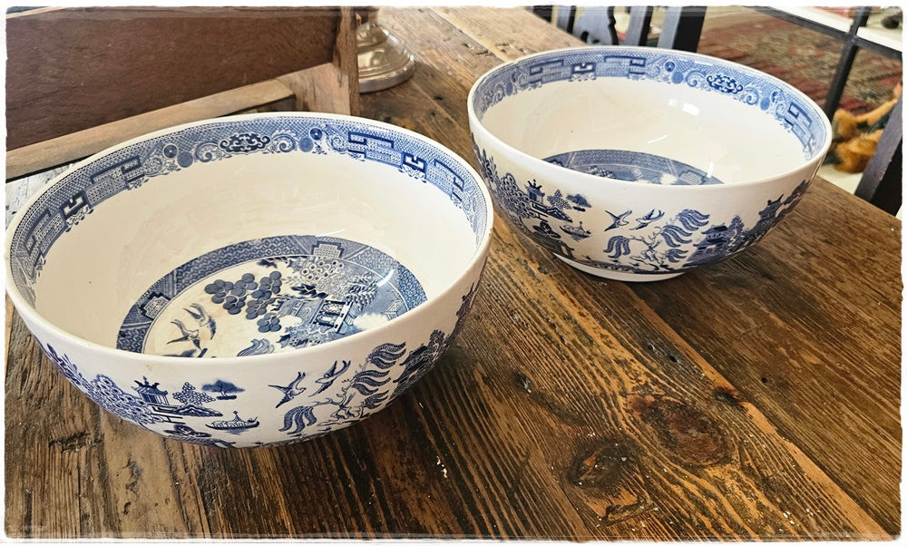Pair of blue and white bowls. Please note that both bowls are damaged Refer to pics.