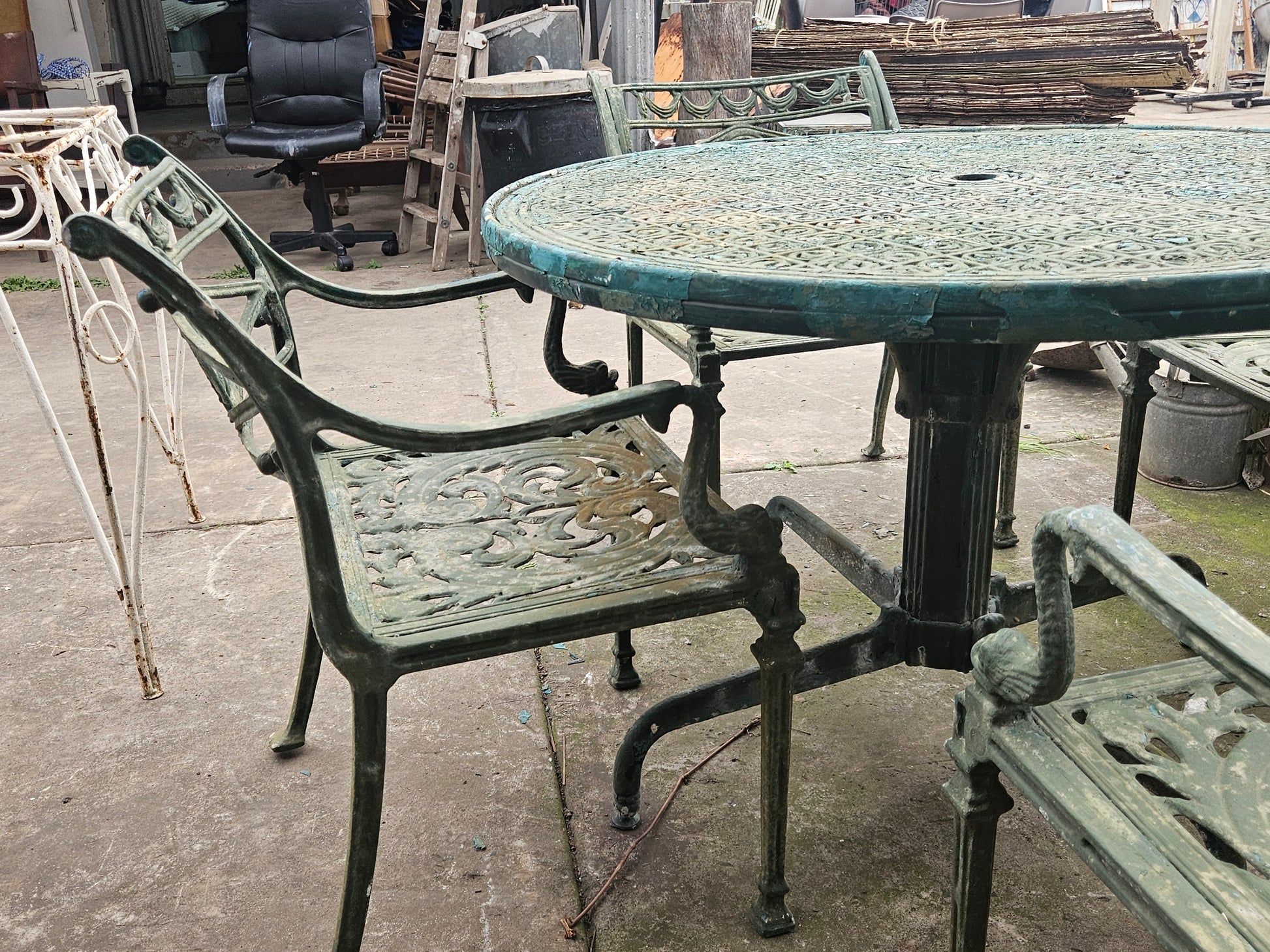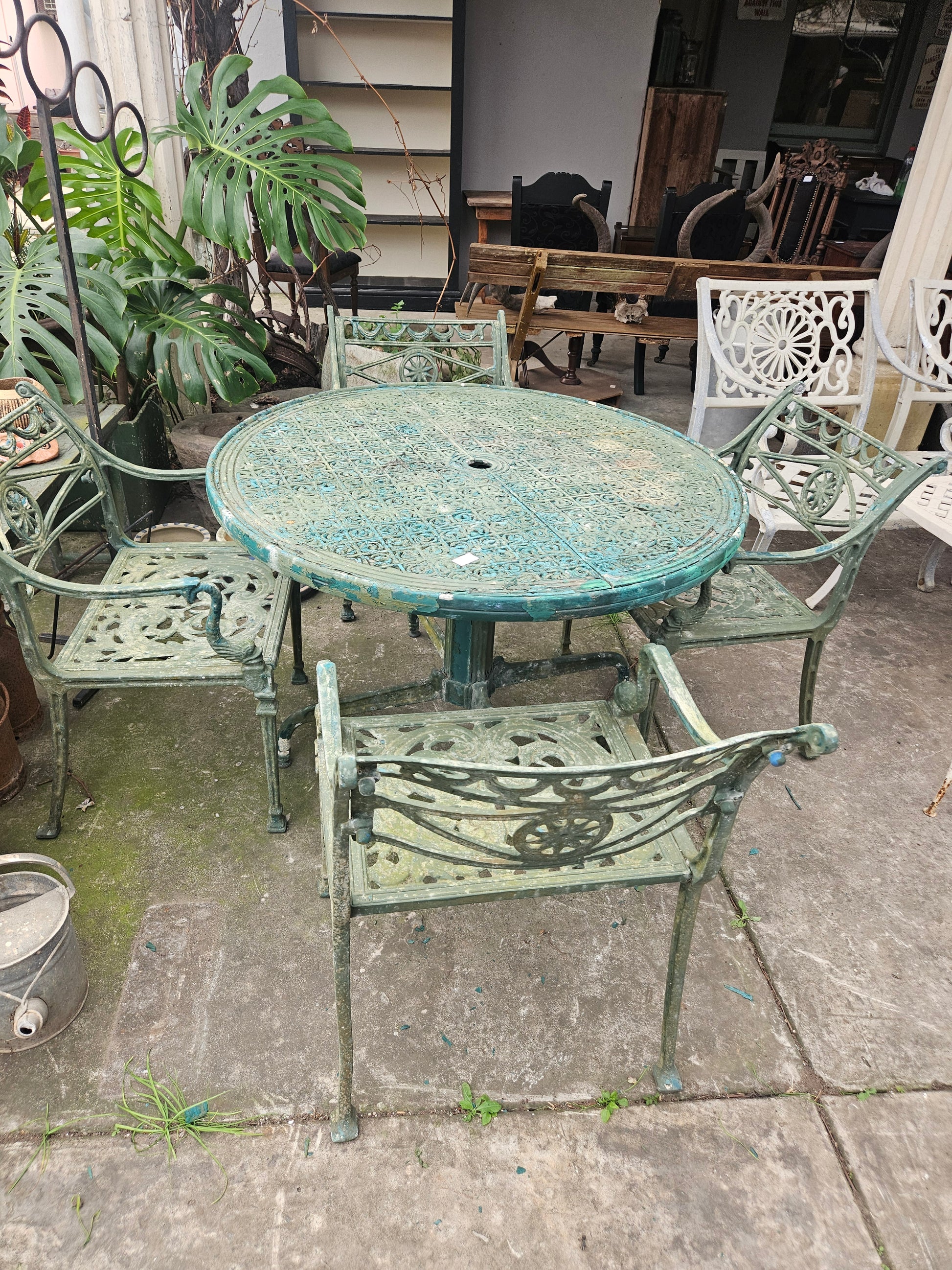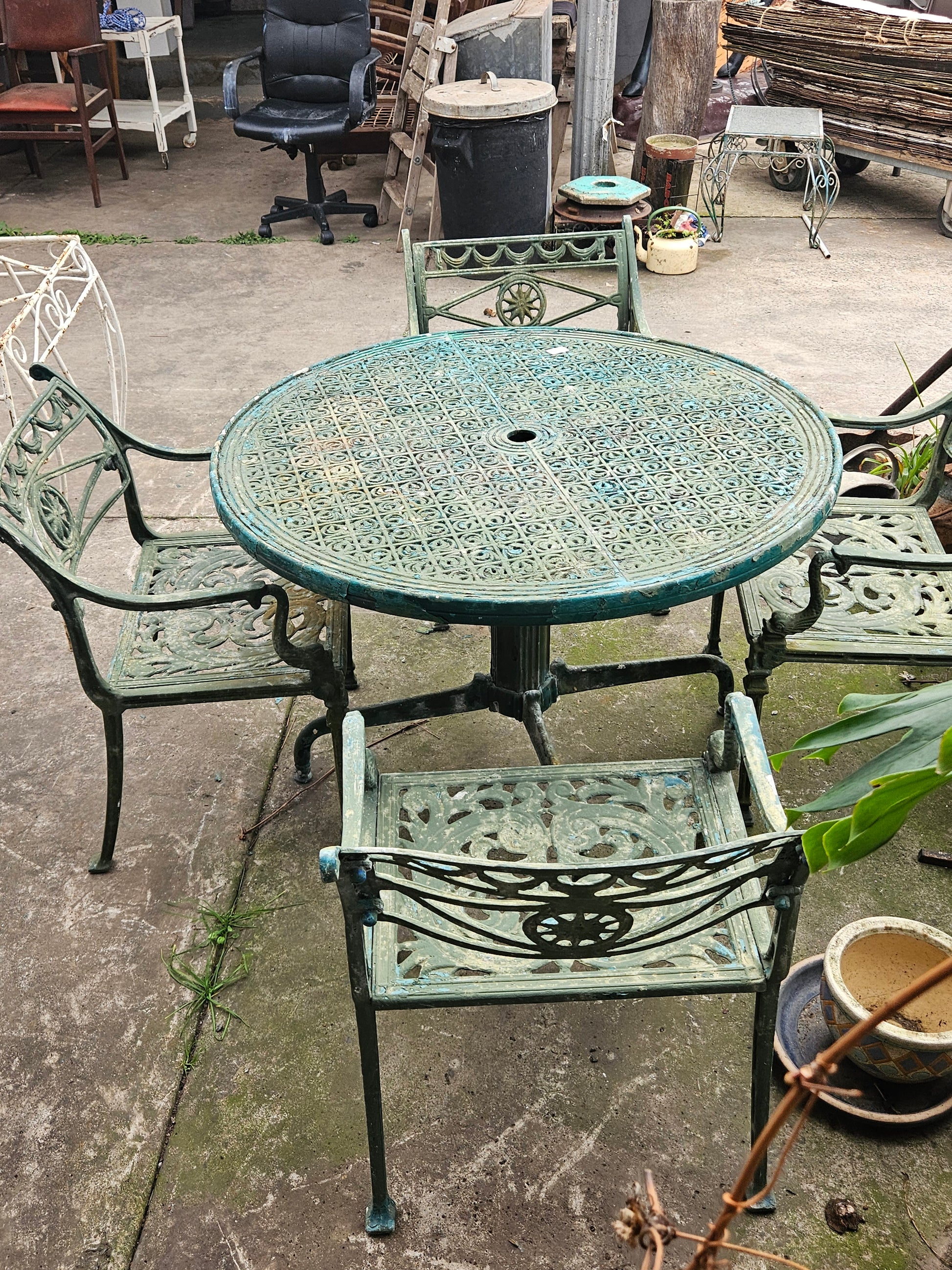 Vintage green patio set. Structurally in good condition, could do with painting.