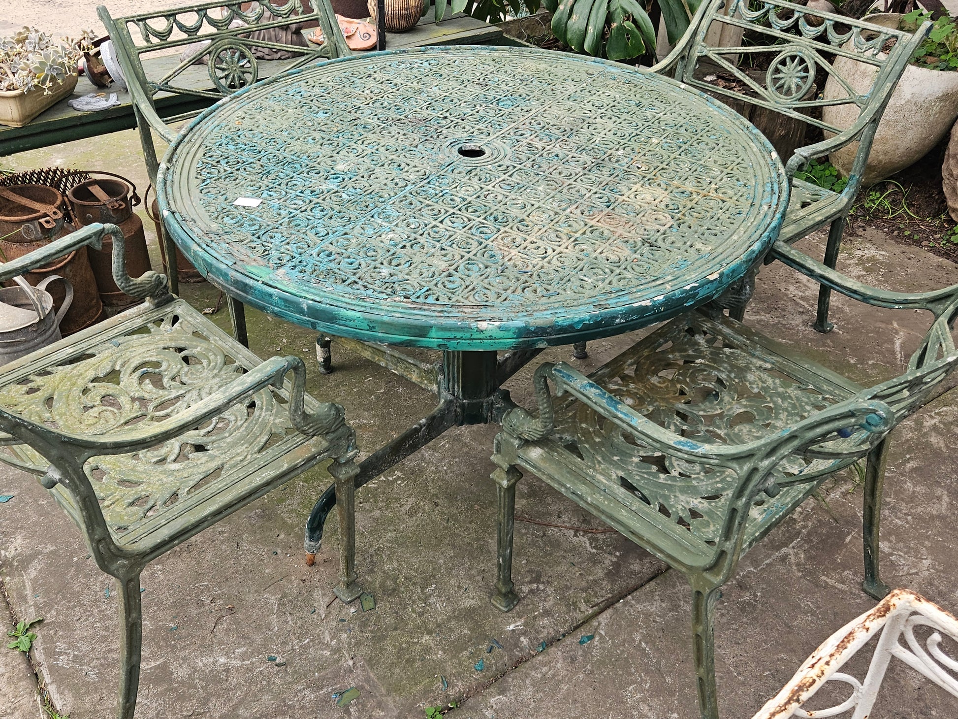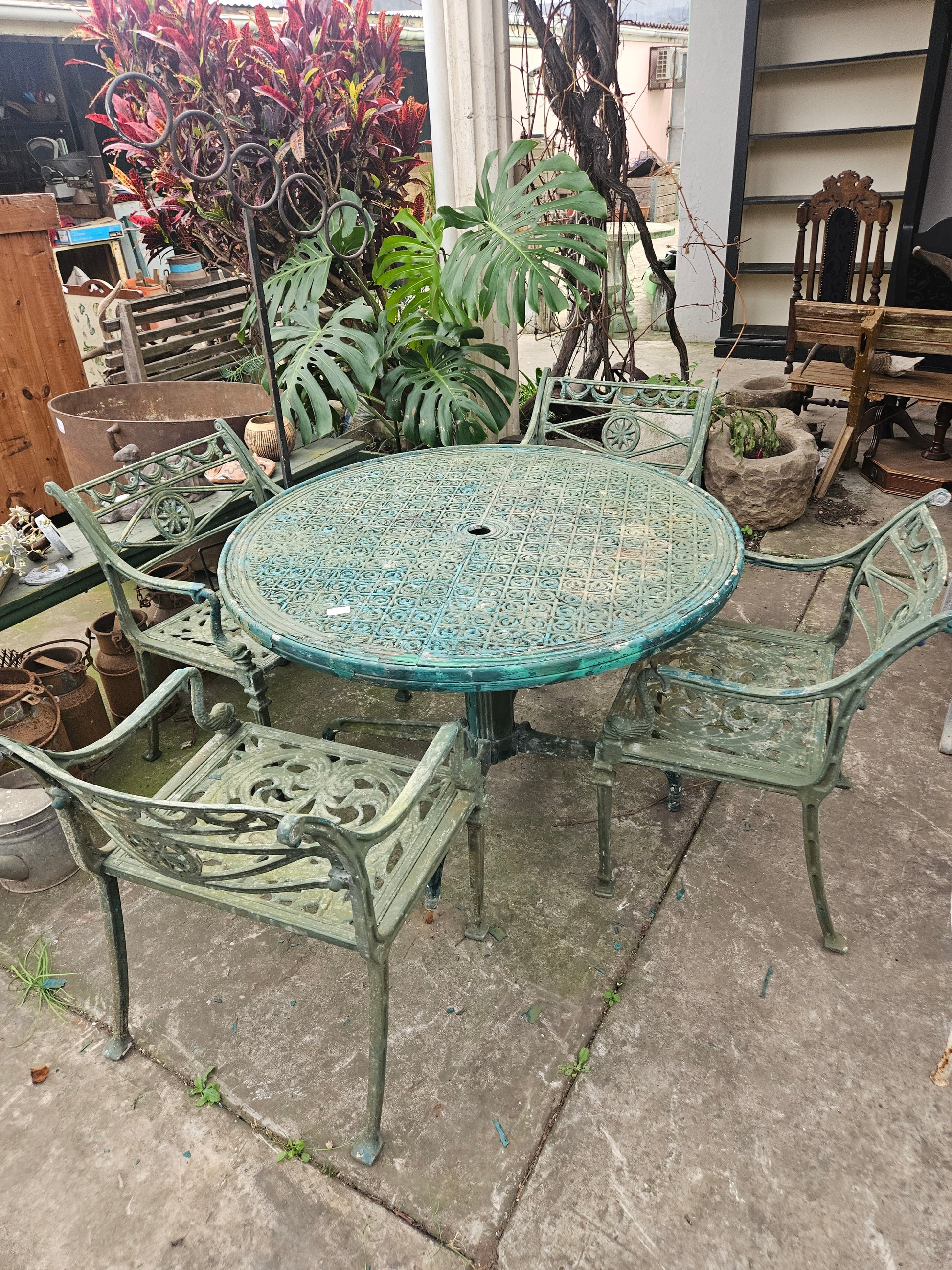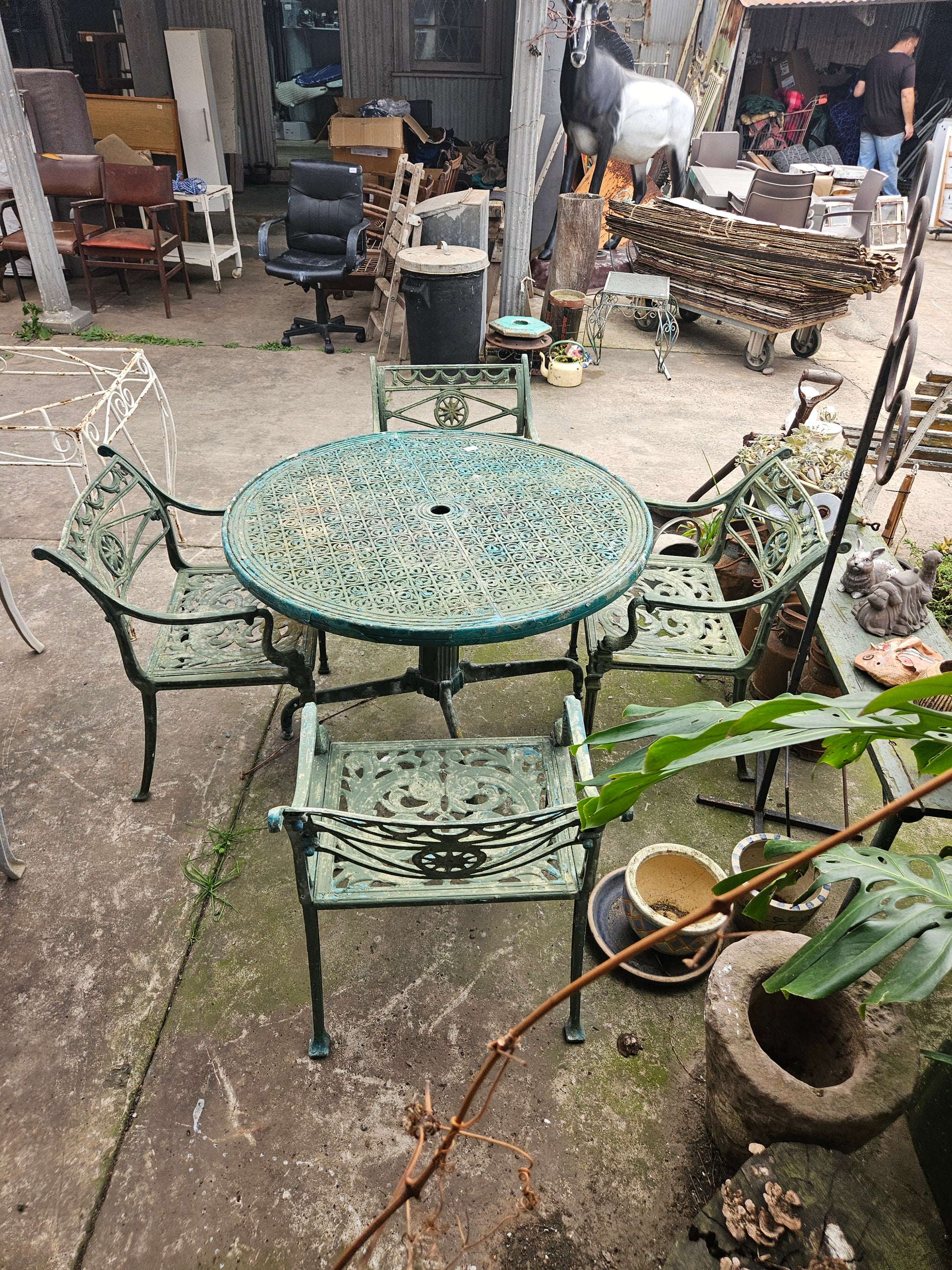 Vintage green patio set. Structurally in good condition, could do with painting.