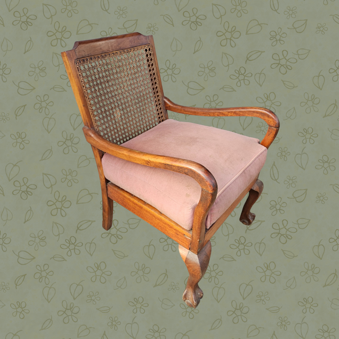 Imbuia chair with rattan back and upholstered cushion. Cute and comfy.