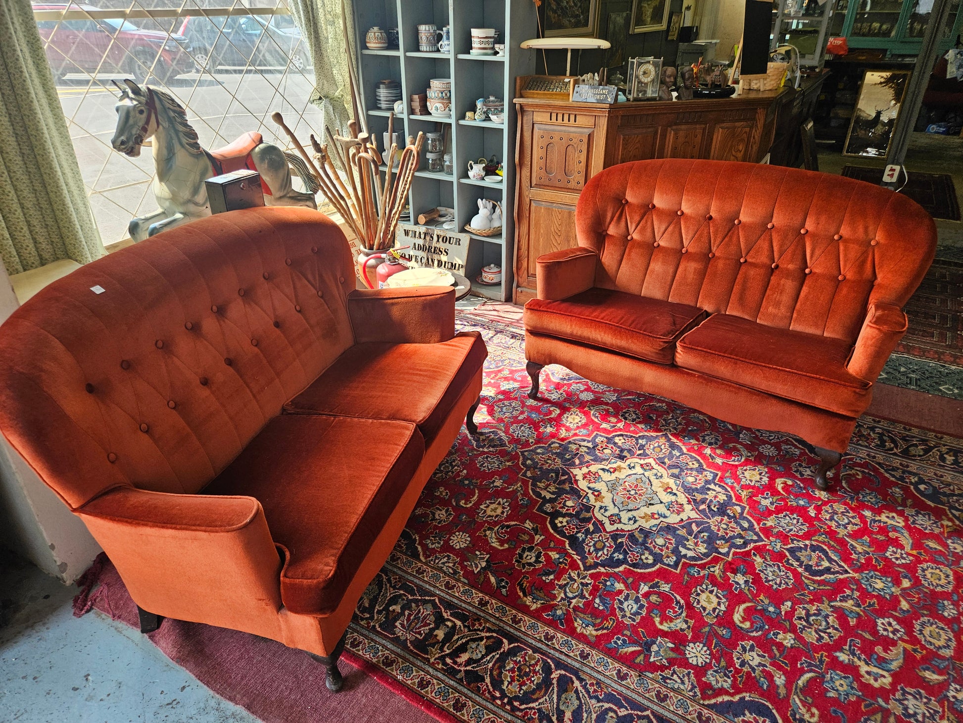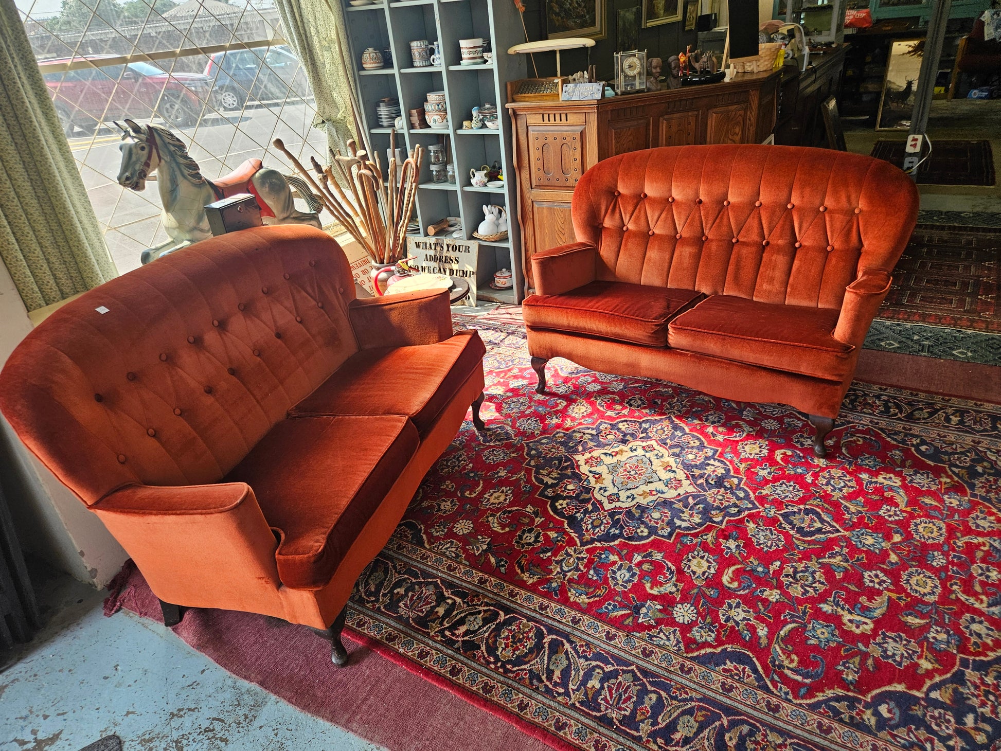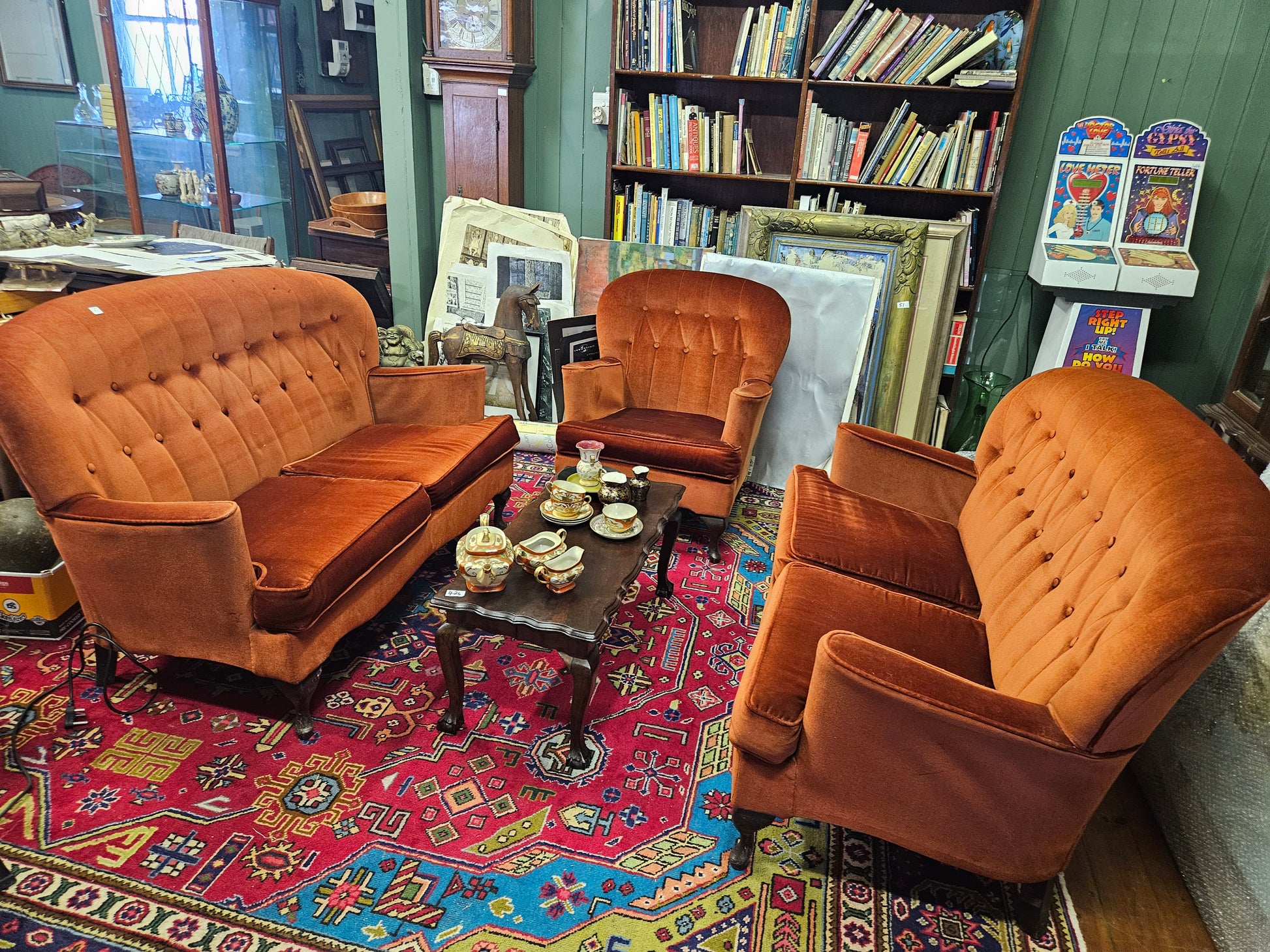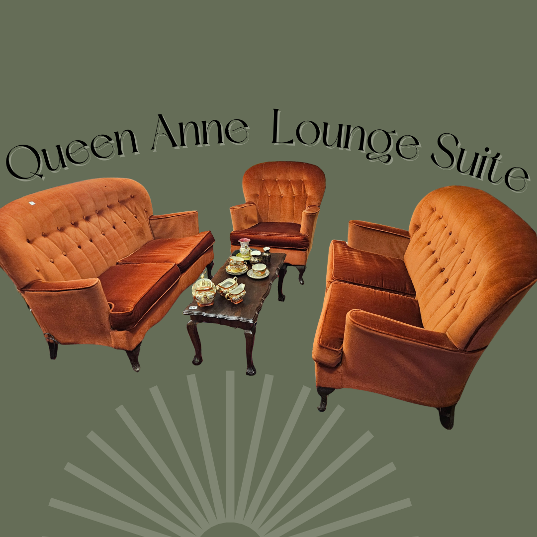 Rust coloured Queen Anne Lounge Suite in immaculate condition. Lovely small set comfortable, neat and ready to go straight into it's new home.