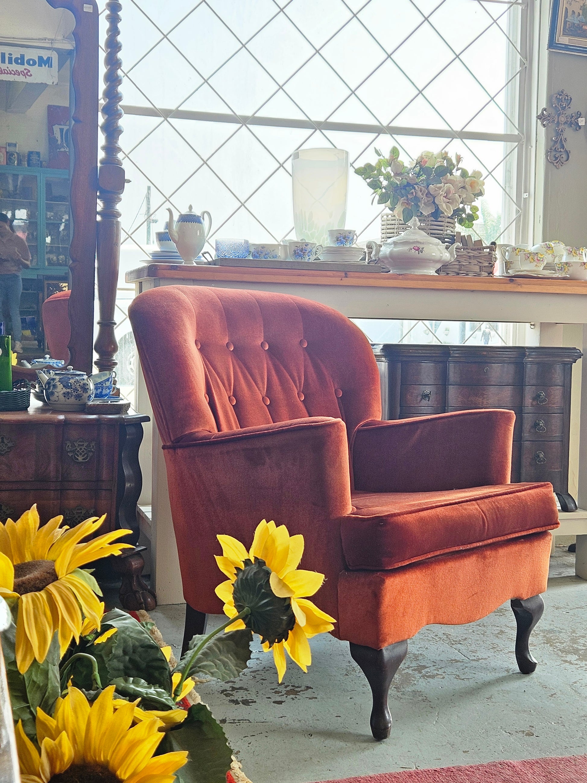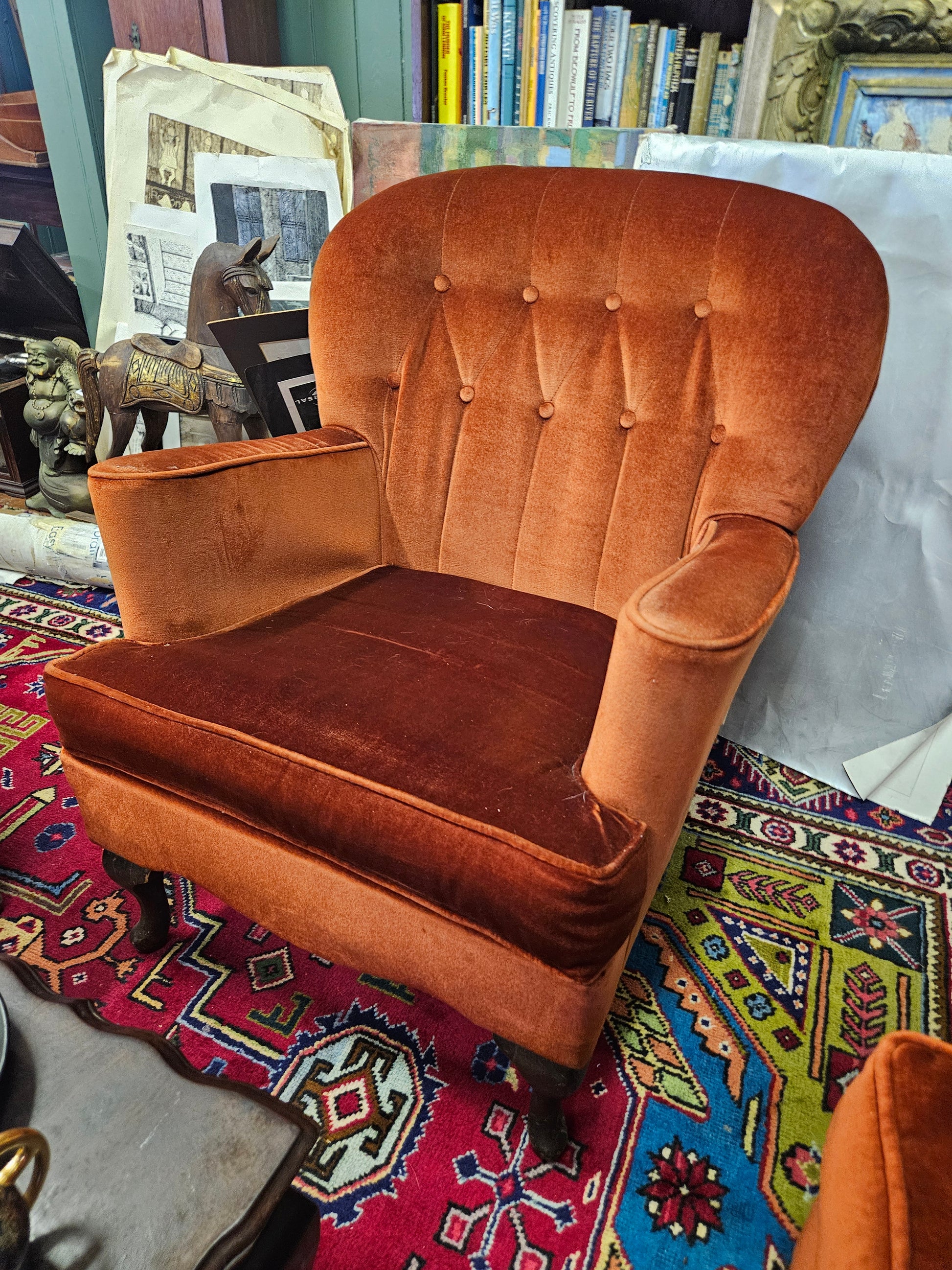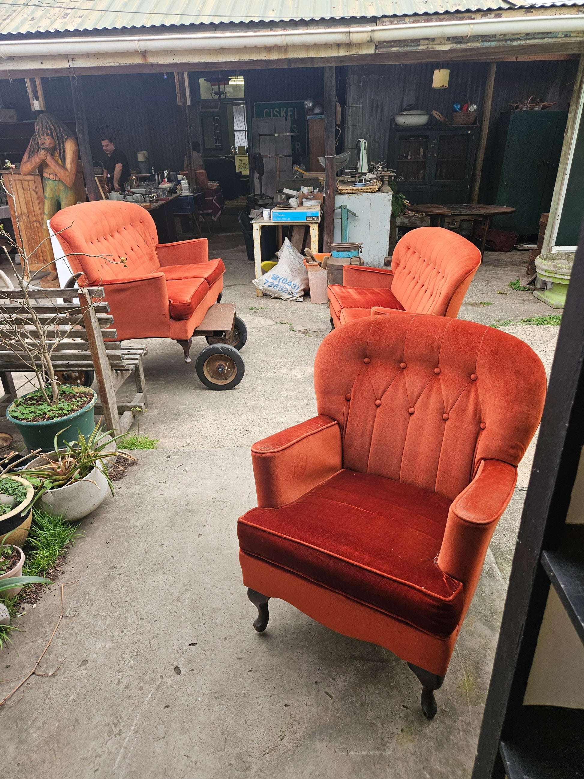 Rust coloured Queen Anne Lounge Suite in immaculate condition. Lovely small set comfortable, neat and ready to go straight into it's new home.