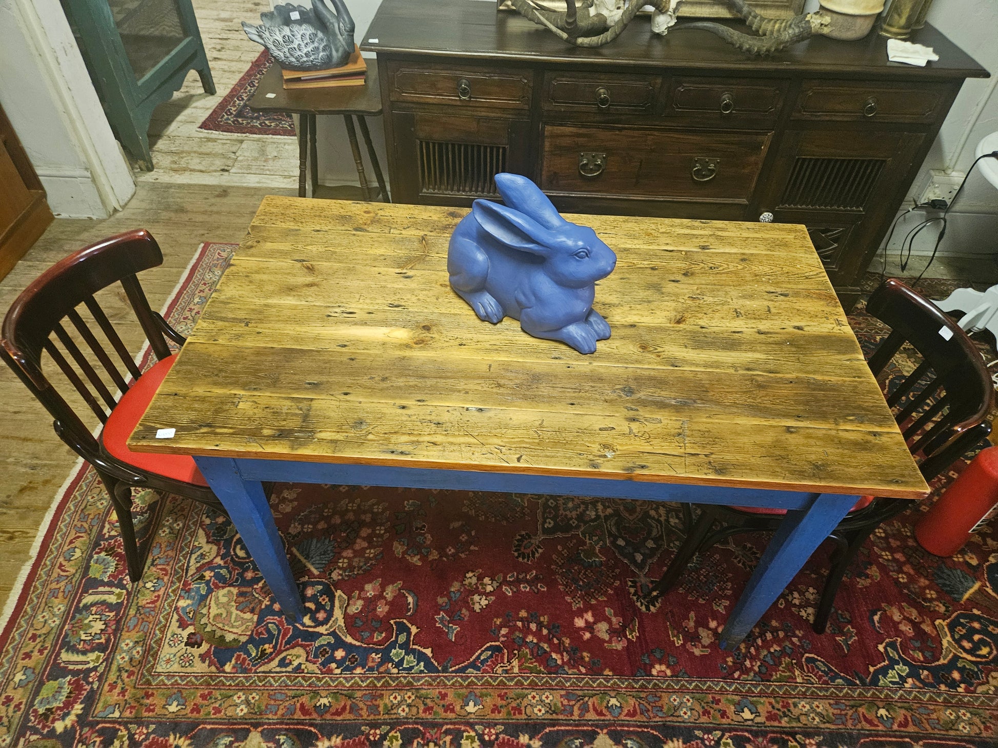 Rustic table with blue legs
