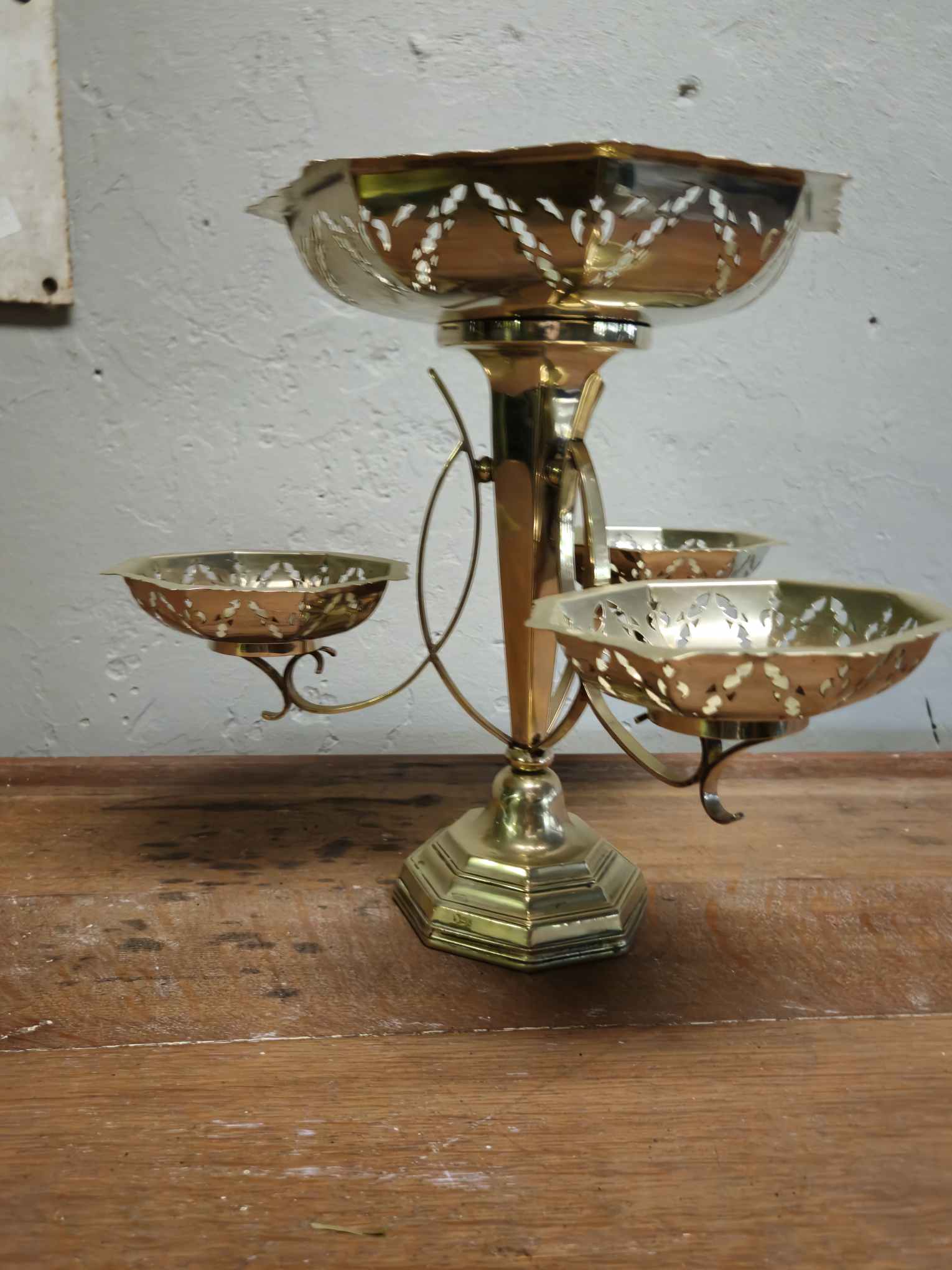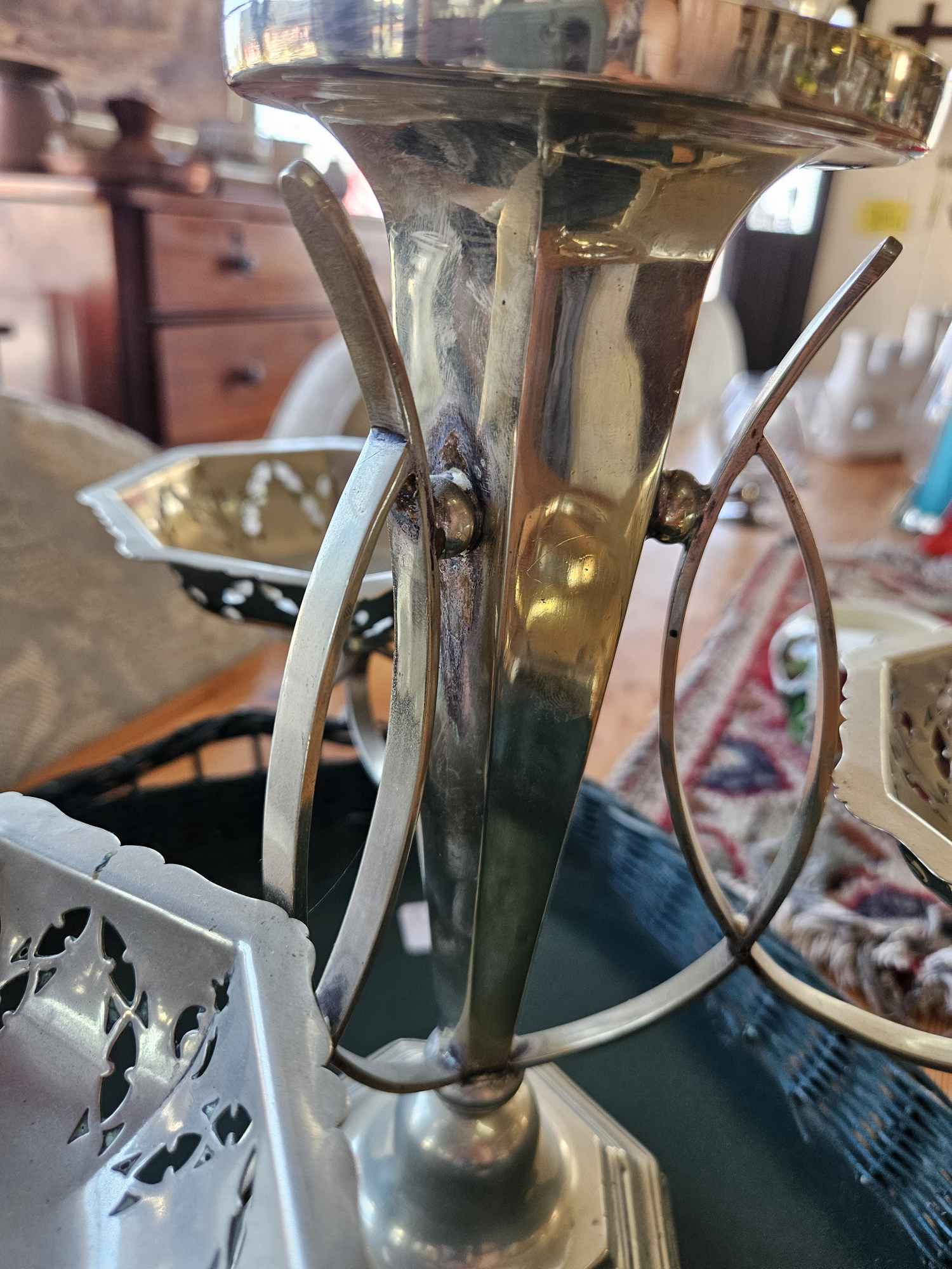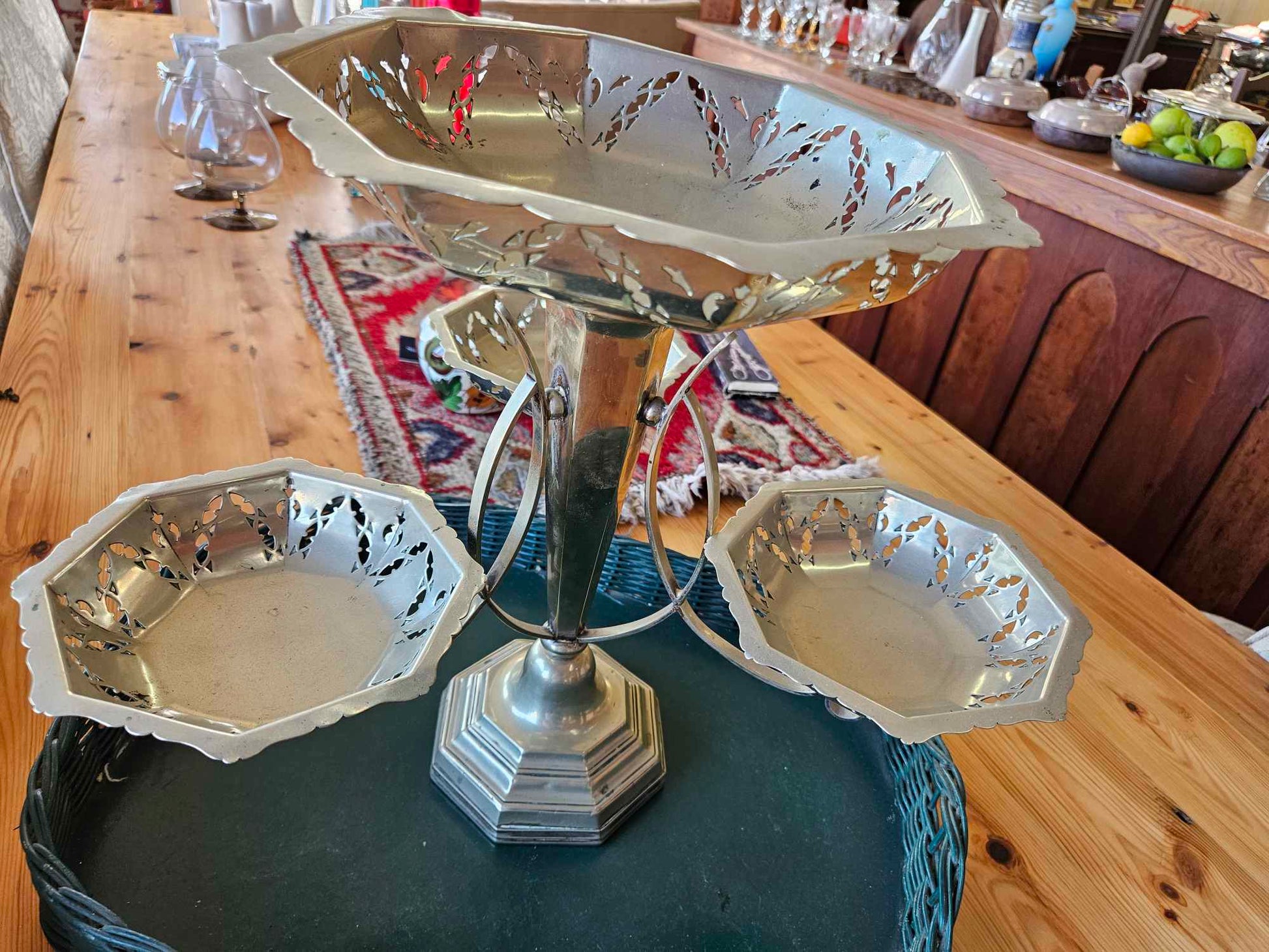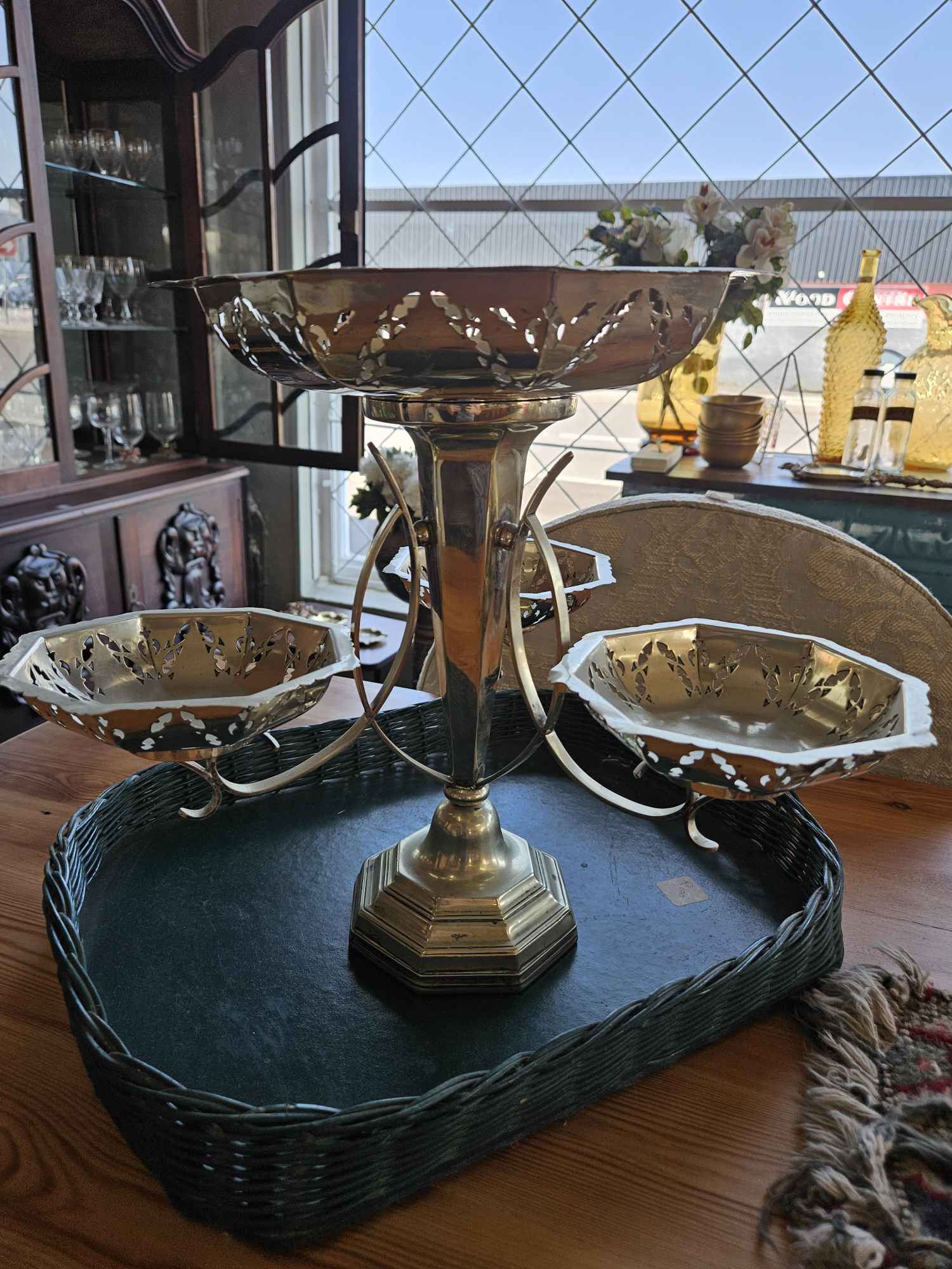 Silver plated epergne. Stamped EPNS. Good quality. Some minor tarnishing. Each "bowl" cab be removed from the epergne.