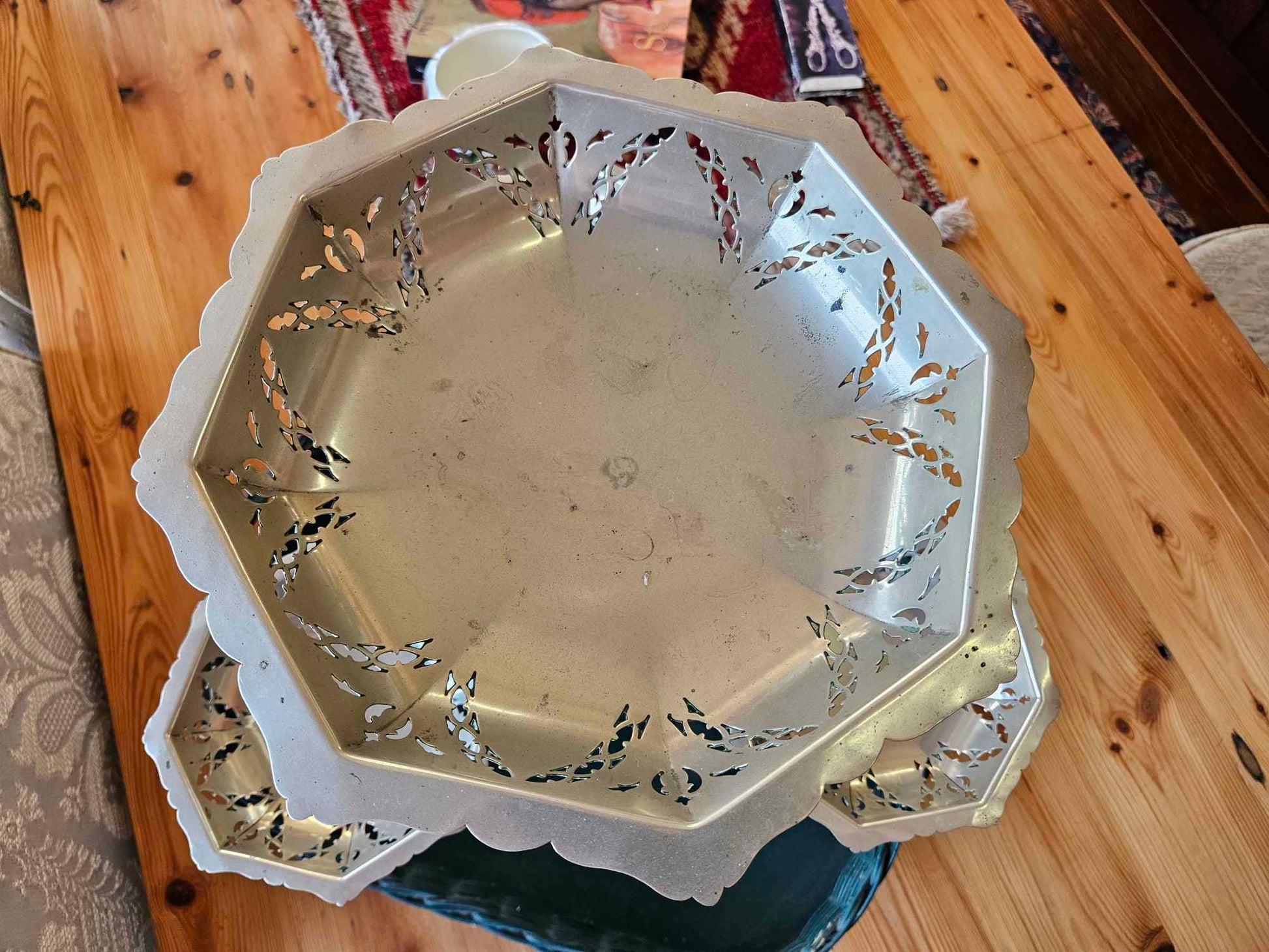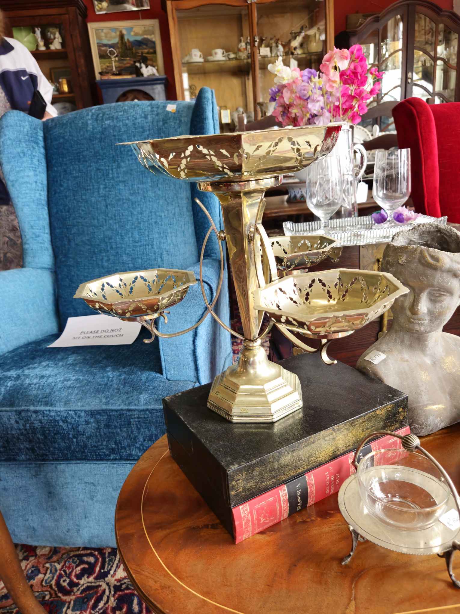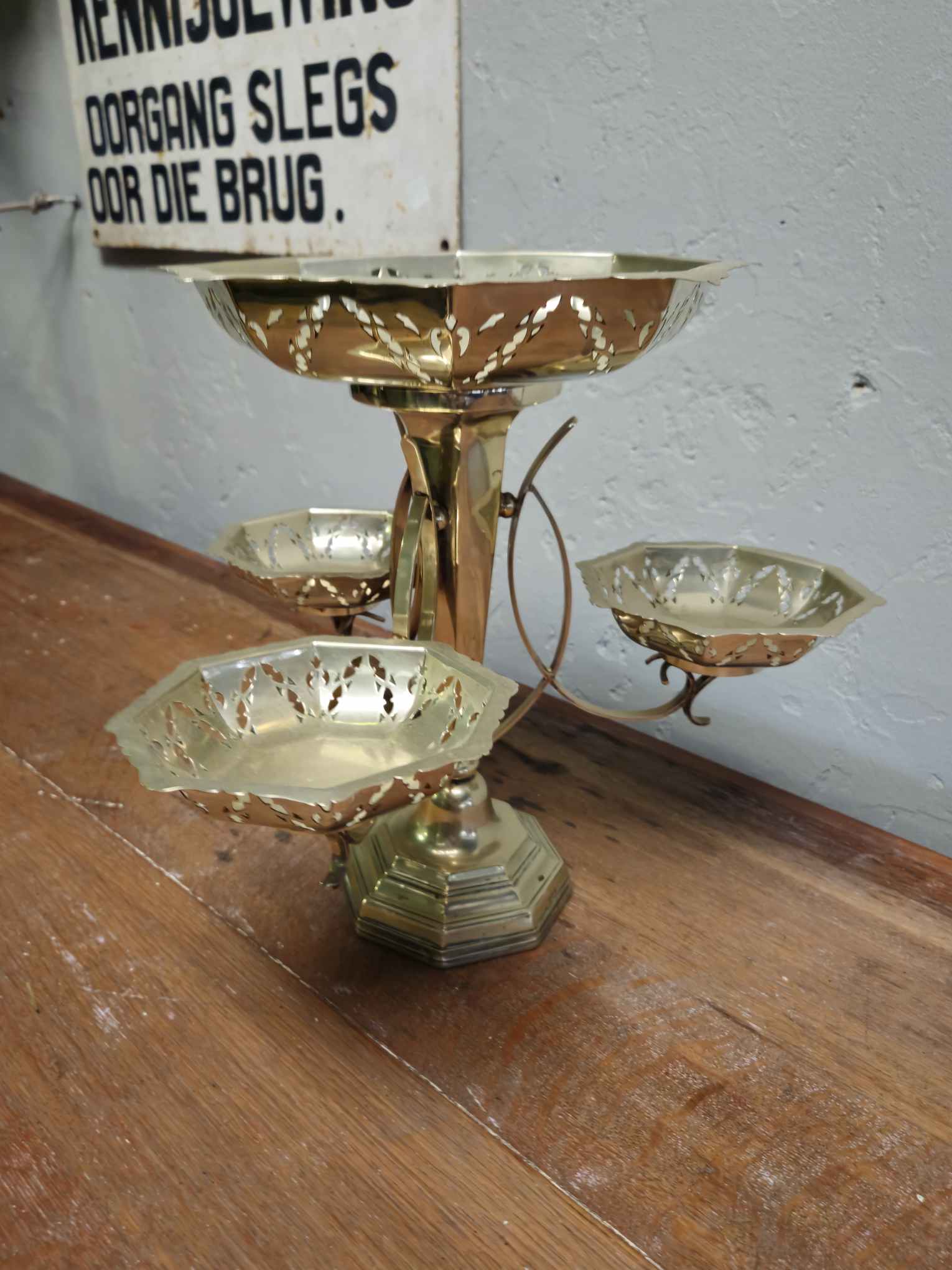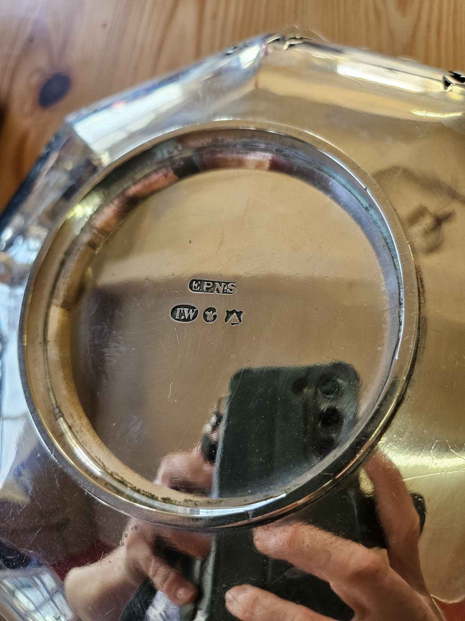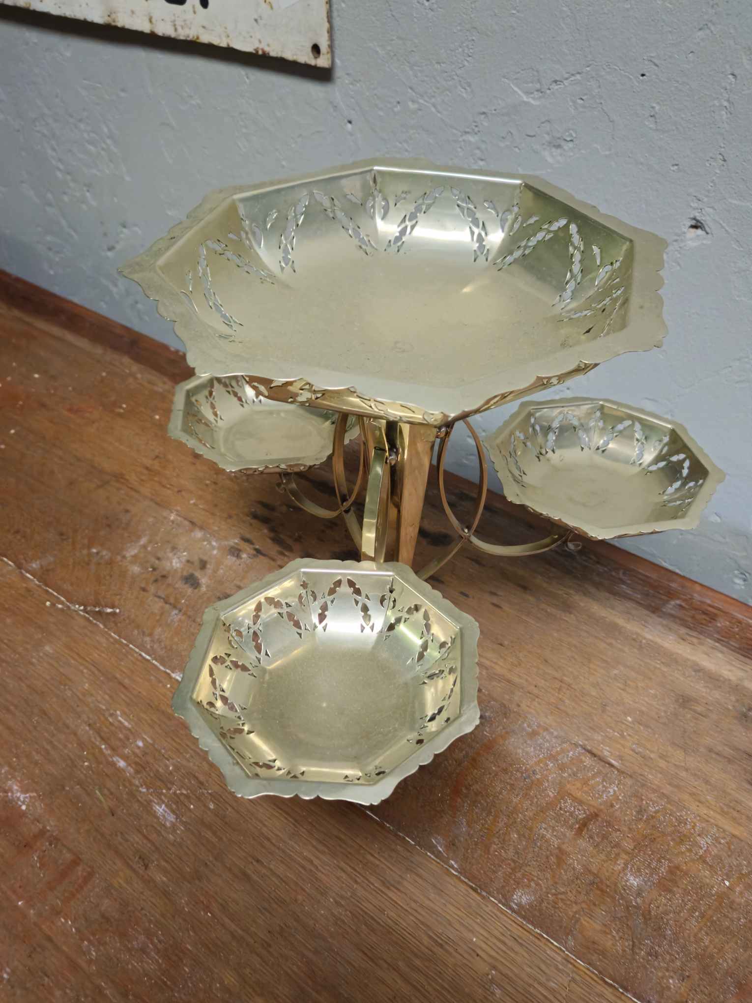 Silver plated epergne. Stamped EPNS. Good quality. Some minor tarnishing. Each "bowl" cab be removed from the epergne.