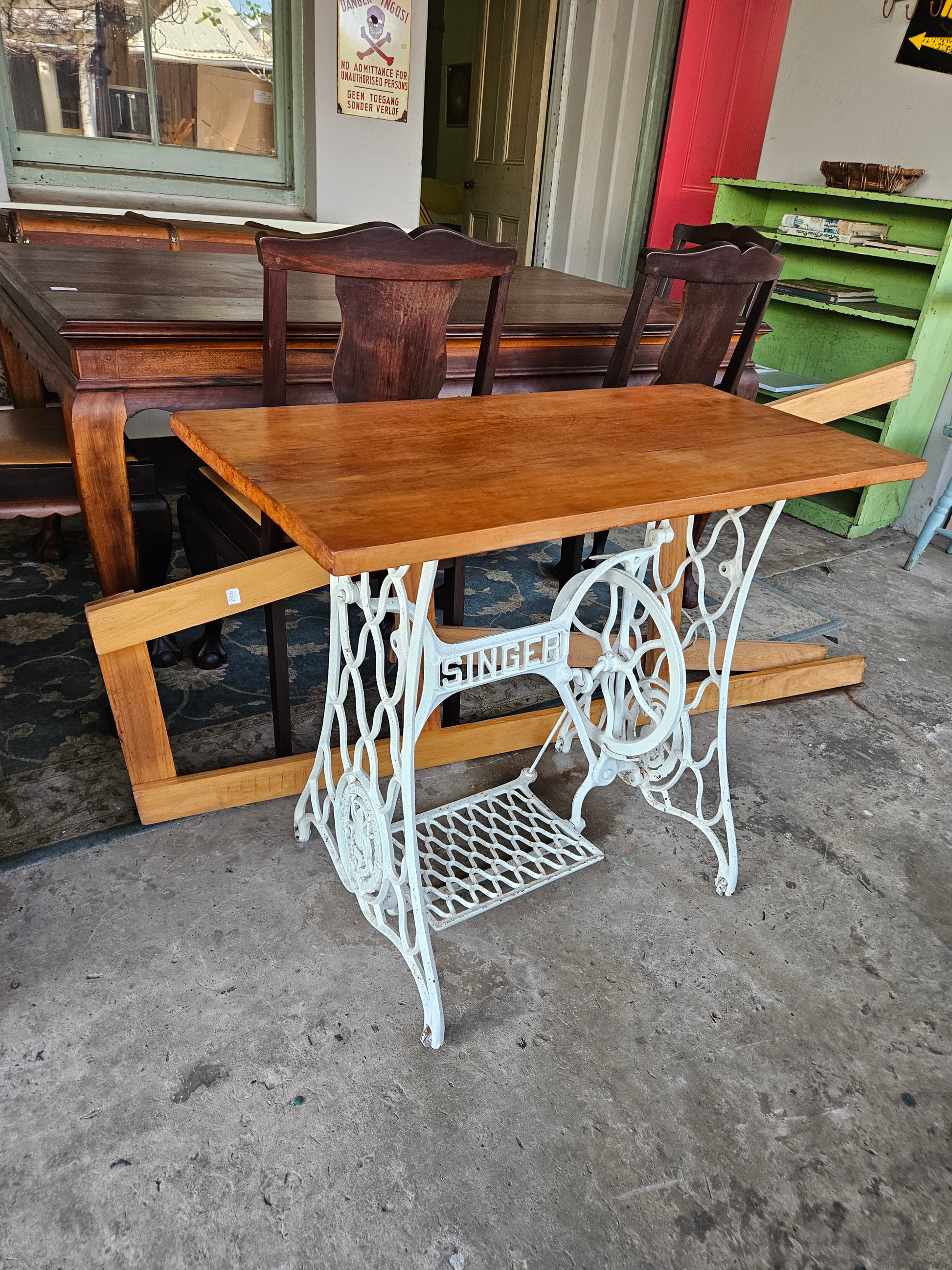 Occasional table made from an old singer sewing machine treddle and a yellowwood top.