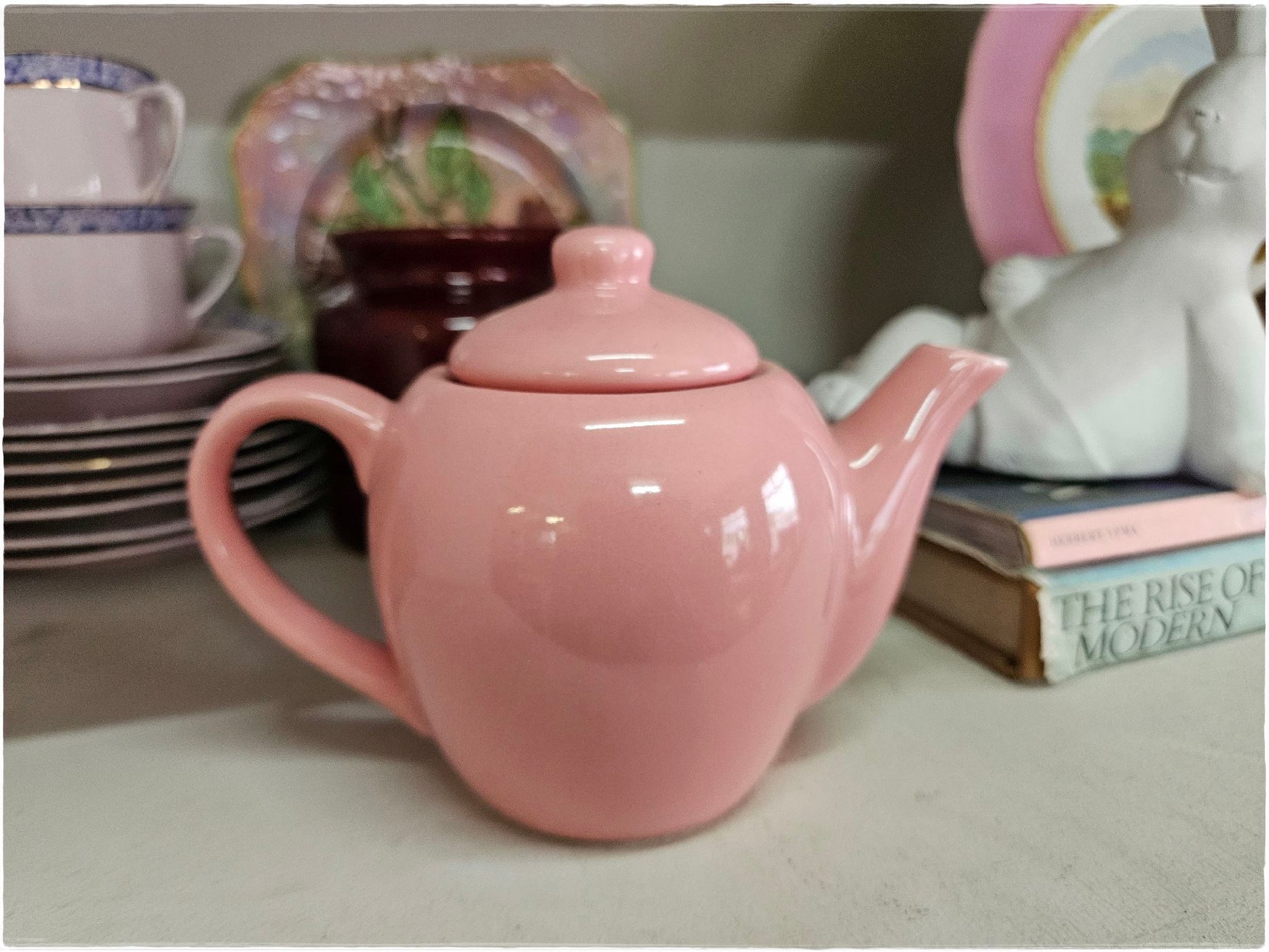 Small pink teapot, in good condition! Great for 2 cups of tea.