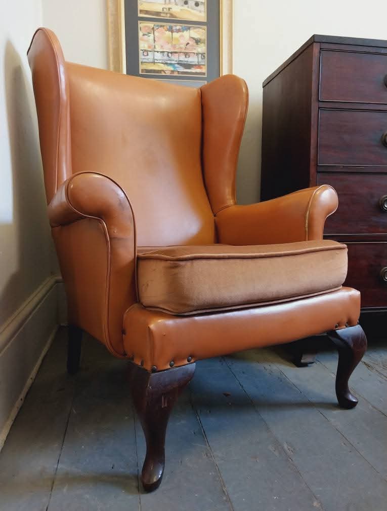Wingback chair, needs some work done to seat as some of the straps are loose. Otherwise a beautiful shape and not much else wrong.